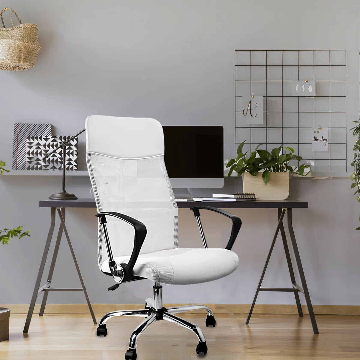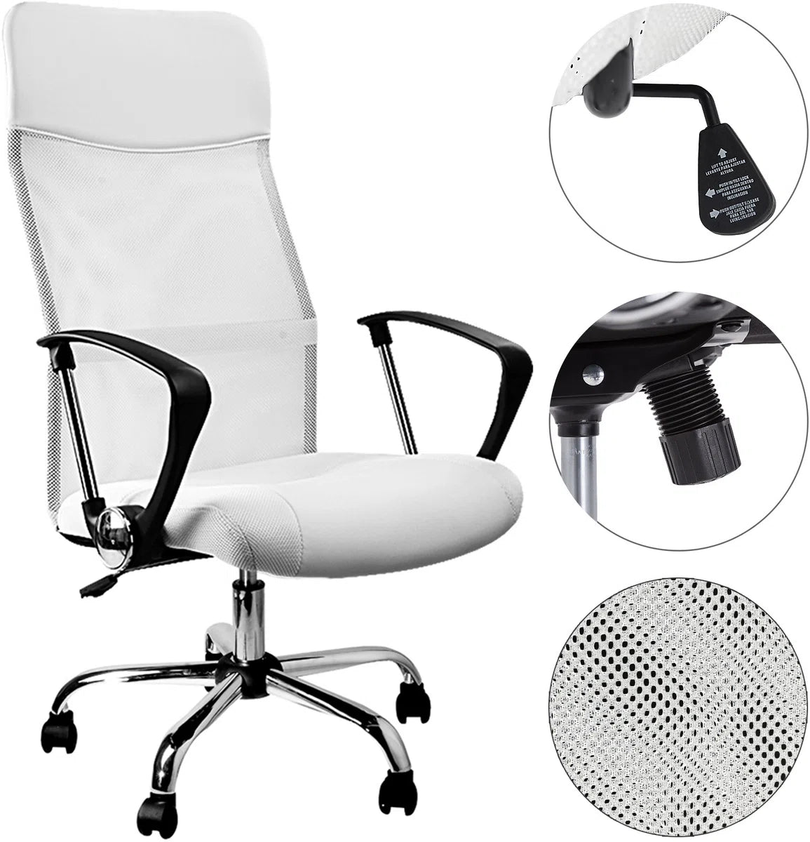 De gemakkelijk te reinigen imitatie leer (polyurethaan) en mesh cover bureaustoel is roteerbaar en in hoogte verstelbaar.