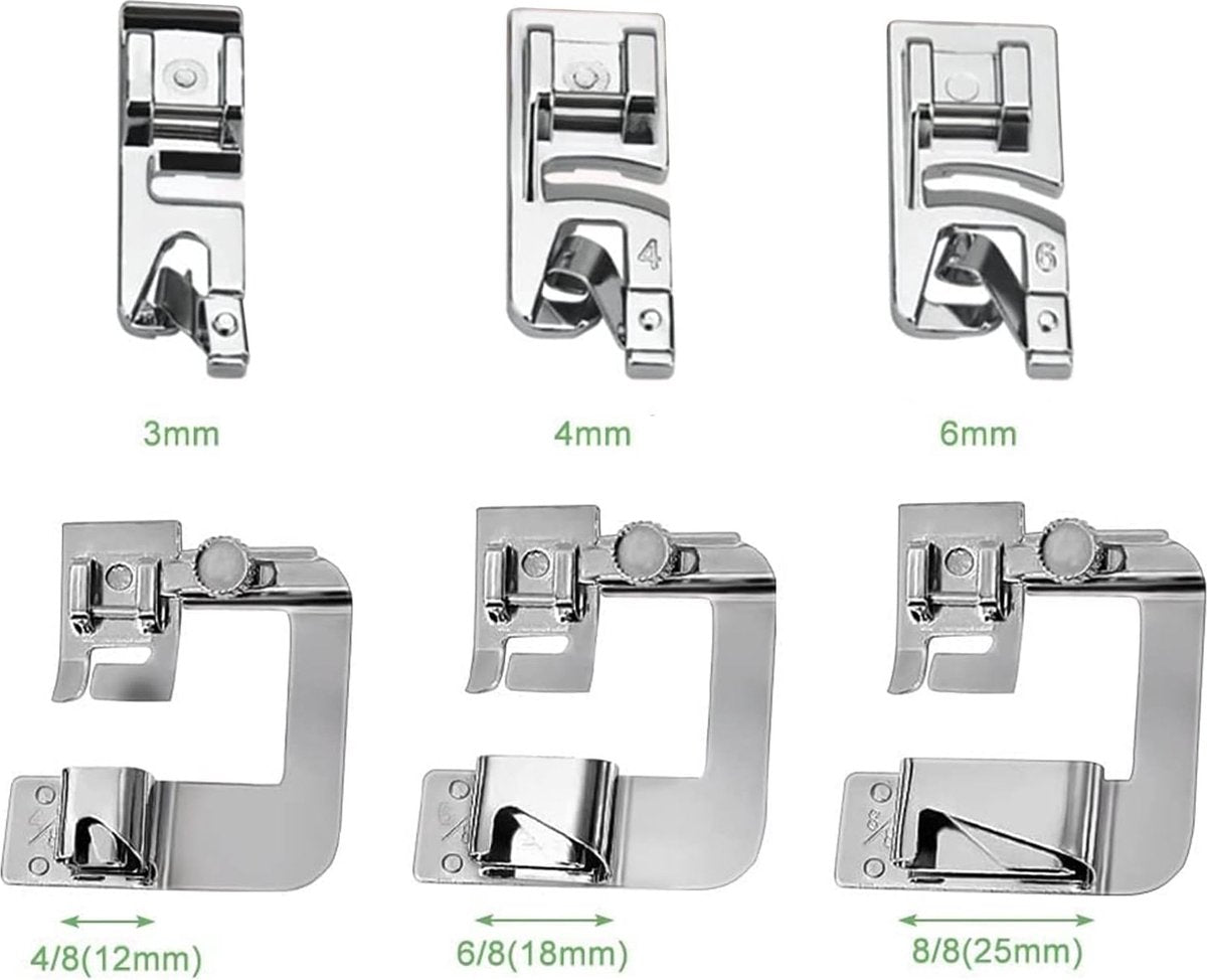 Perfect Gerolde Rand: De gerolde zoomvoet is een essentiële zoomhulp voor uw naaimachine, met deze drukvoet kunt u moeiteloos professionele gerolde zomen creëren en de finishing touch toevoegen aan uw zelfgemaakte kledingstukken en accessoires. Beste kwaliteit: onze zoomvoet voor naaimachines is gemaakt van hoogwaardig roestvrij staal en is , het is geschikt voor alle standaard naaimachines. Gemakkelijk te gebruiken: de gerolde zoomvoet is eenvoudig te installeren en te gebruiken, het helpt u snel en gemakkelijk professionele zoomnaden te creëren, waardoor u met gemak en precisie perfecte gerolde randen kunt maken. VERSCHILLENDE MATEN Met onze set drukvoeten krijgt u verschillende maten gerolde zoomvoeten. Zo kunt u de juiste zoomvoet kiezen voor verschillende soorten stoffen en diktes.