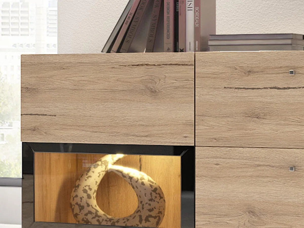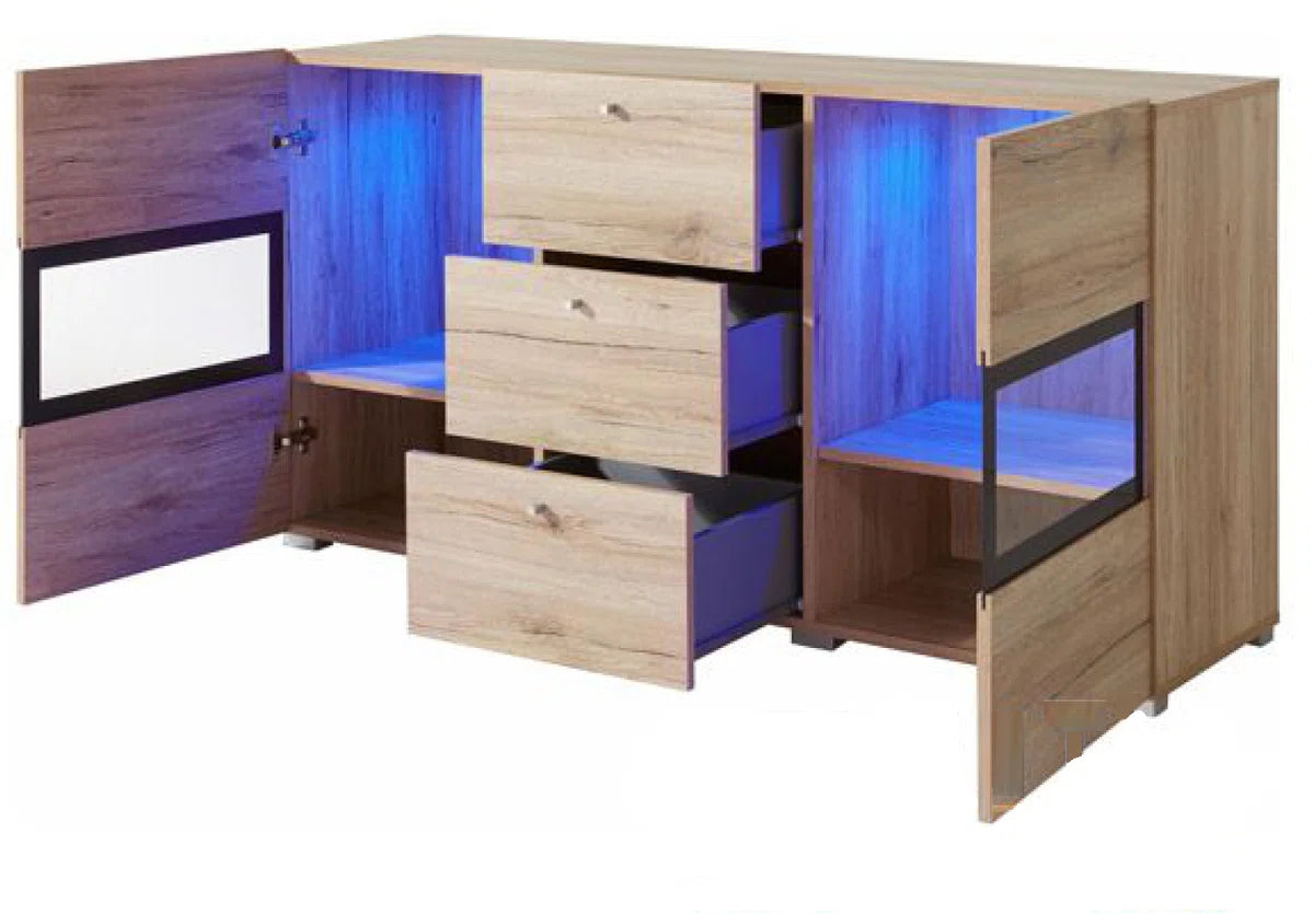 Commode Babel, Sanremo Eik, Dressoir met 2 deuren en 3 ladesn, zonder led