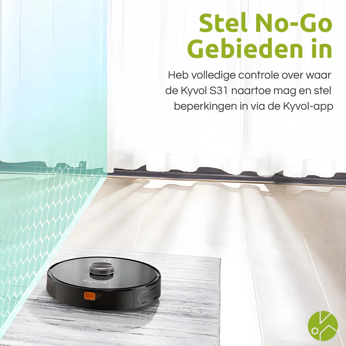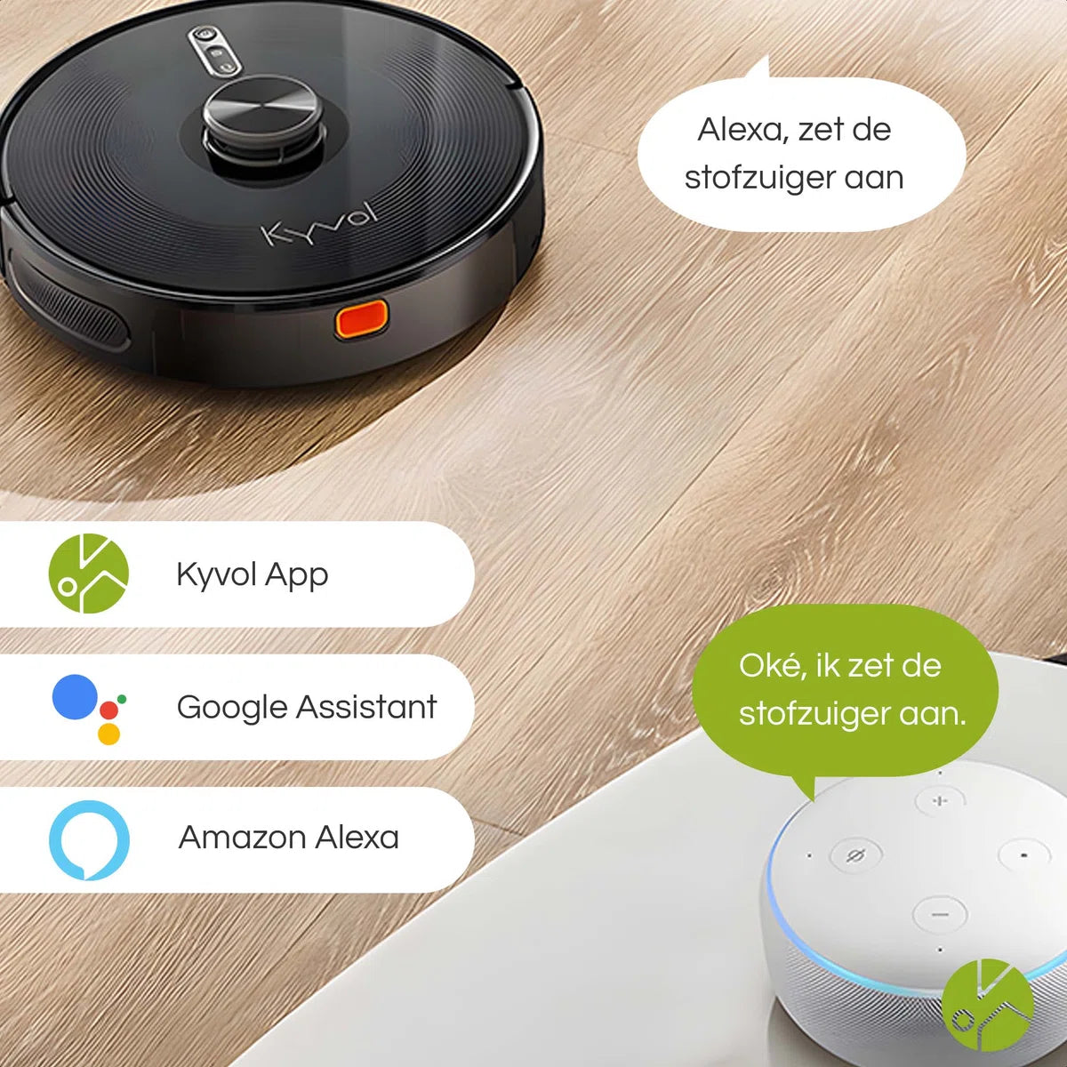 Naast de afstandsbediening is de S31 ook te verbinden en te bedienen met de app. Pas de zuigstand aan, kies de modus, creëer verboden zones en stel een rooster in op maat. Het is ook mogelijk om de robot met je stem te besturen via de smart home platformen Amazon Alexa of Google Assistant.