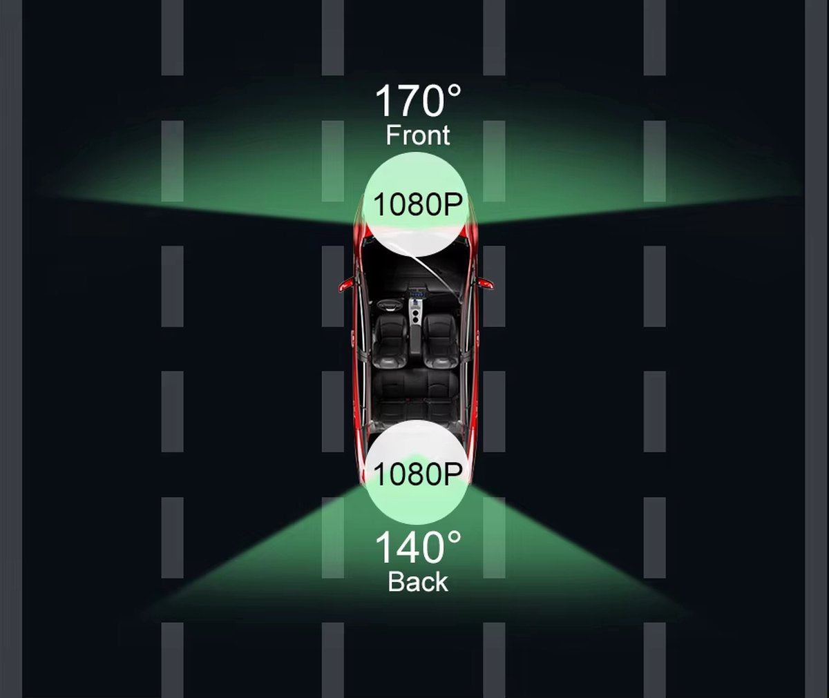 ● Videoresolutie: Voorkant: 1920*1080P @ 30FPS; Achterkant: 1920*1080P @ 25FPS
