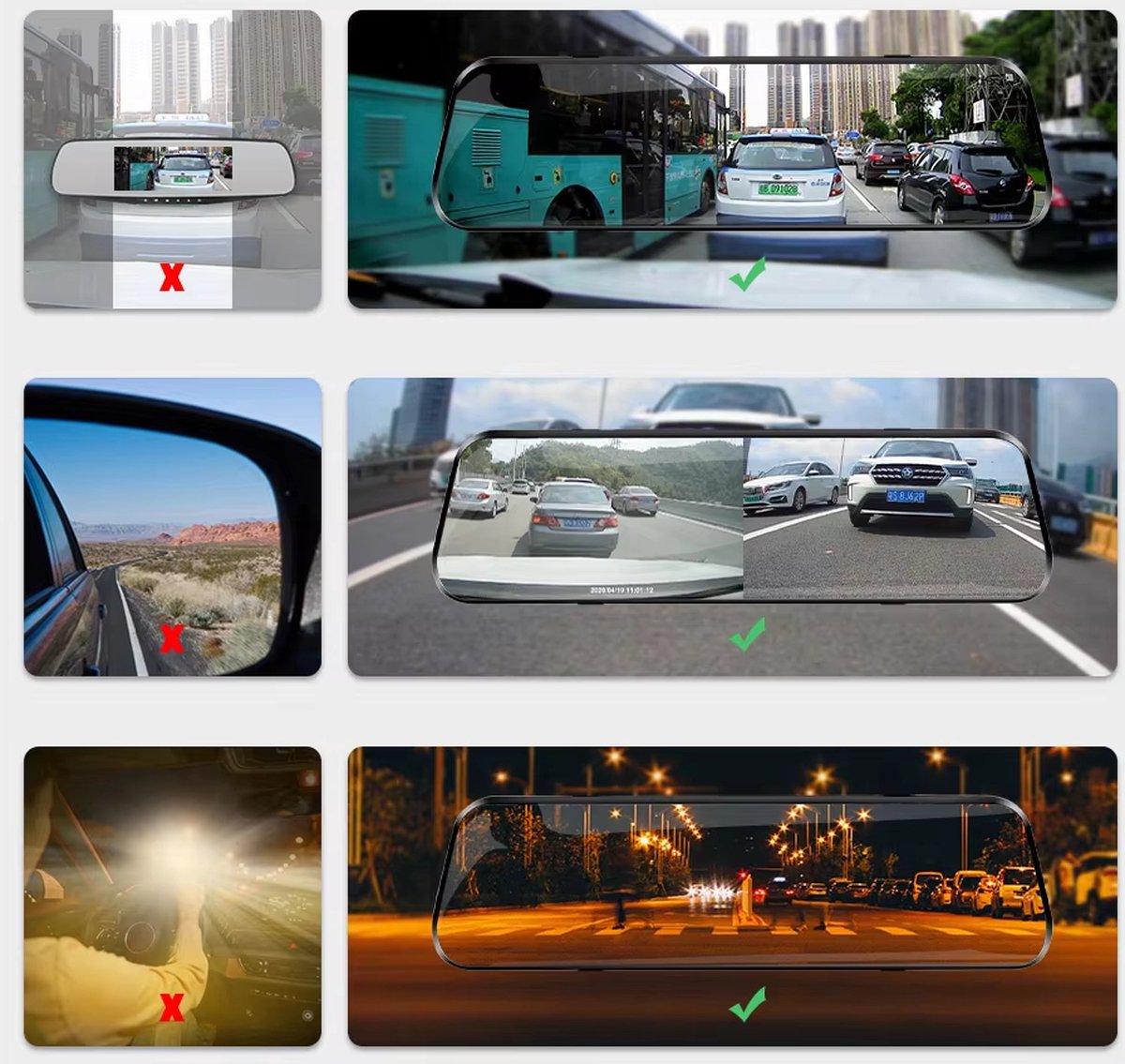 Slimme achteruitkijkhoek schakelaar tussen rijden en parkeren. Je kan alle verdere voertuigen en objecten duidelijk achter zien. Het zal de achteruitkijkcamera automatisch schakelen om een dichter back-upbeeld te geven bij het parkeren.