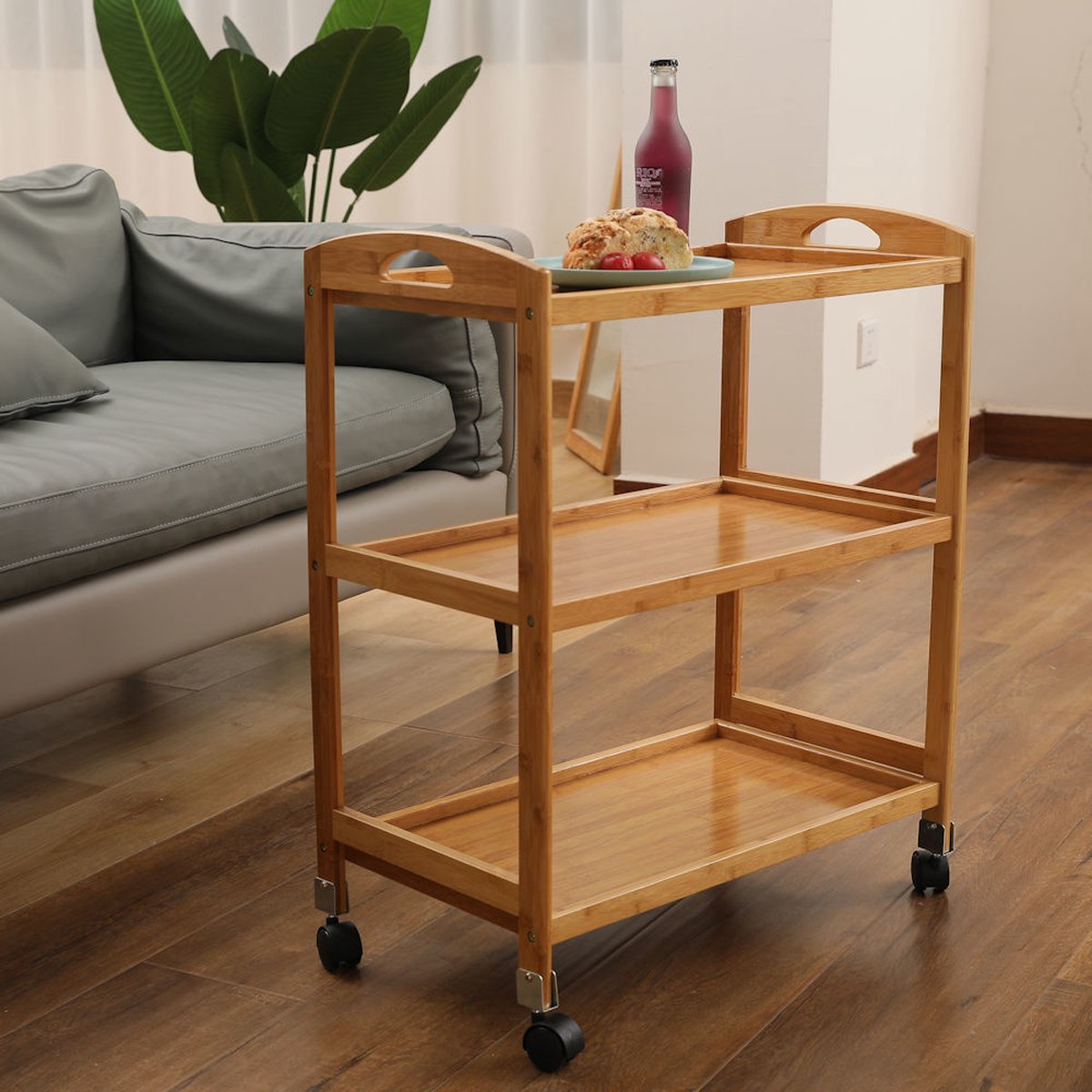 Decopatent® Keukentrolley op wieltjes - 3 laags bamboe houten keukenwagen - serveerwagen trolley met 4 wielen - keuken trolley