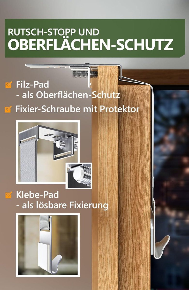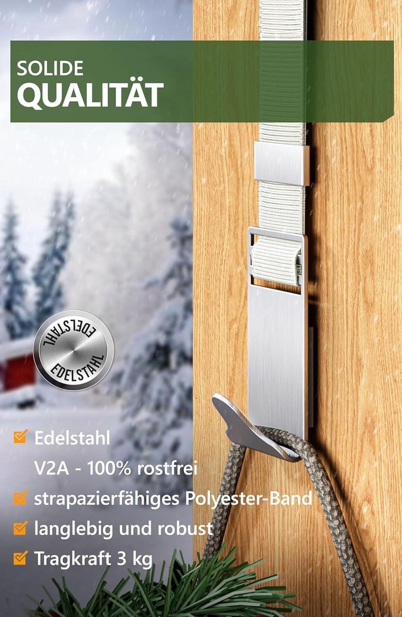 De deurkranshouder is eenvoudig te bevestigen en biedt een stevige grip voor je kerstkrans. Het roestvrijstalen materiaal zorgt voor duurzaamheid en het vilten pad beschermt het oppervlak van je deur.