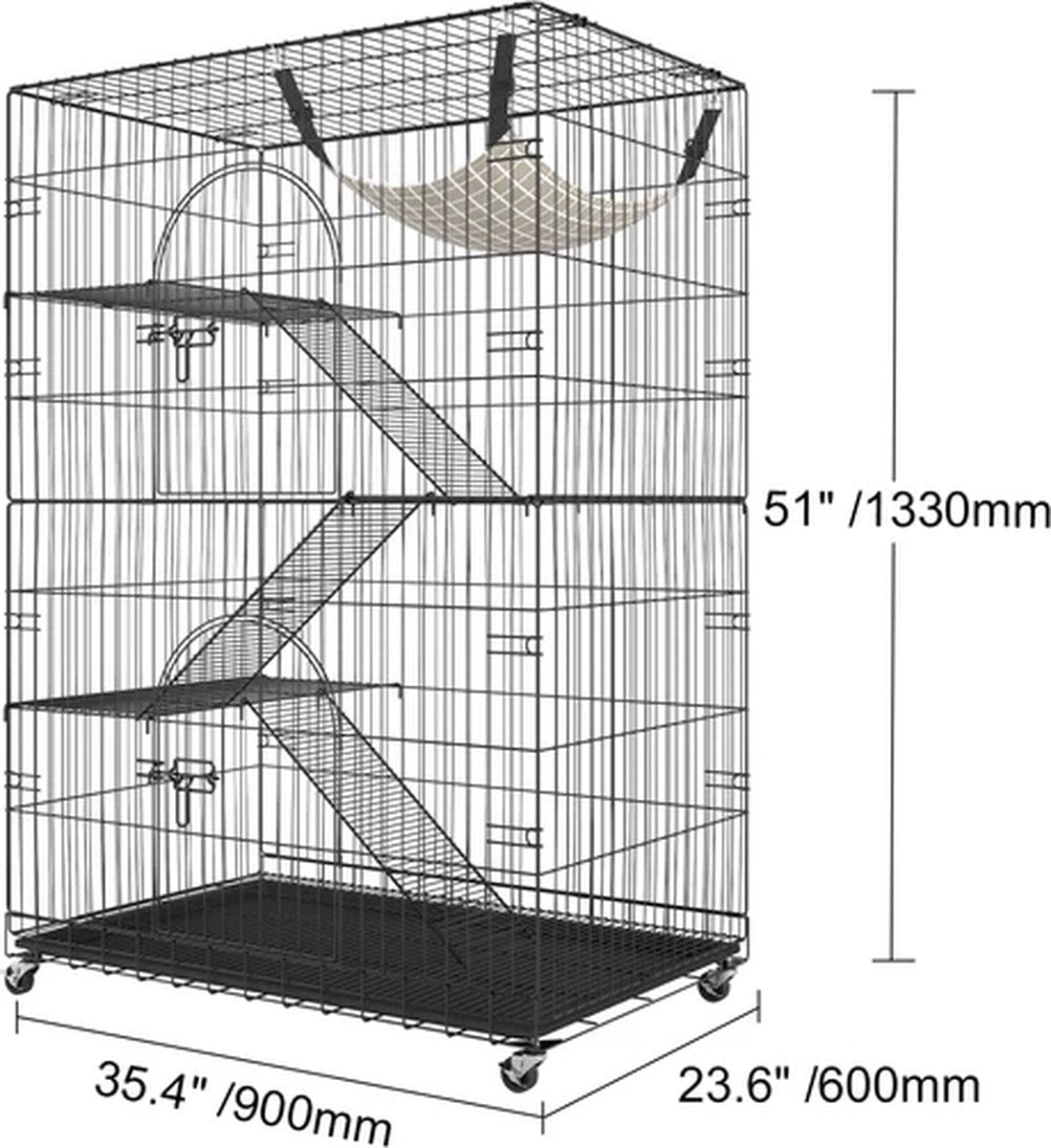 Dierenverblijf Op Wielen - Kattenren - Katten bench - Binnen & Buiten - Zwart - 90x60x133CM - Ook Geschikt Voor Cavia, Fred, Konijn, Hamster, Vogel - Draad Kennel - Groot Formaat - Inklapbaar - 4 Lagen - 30KG Draagvermogen
