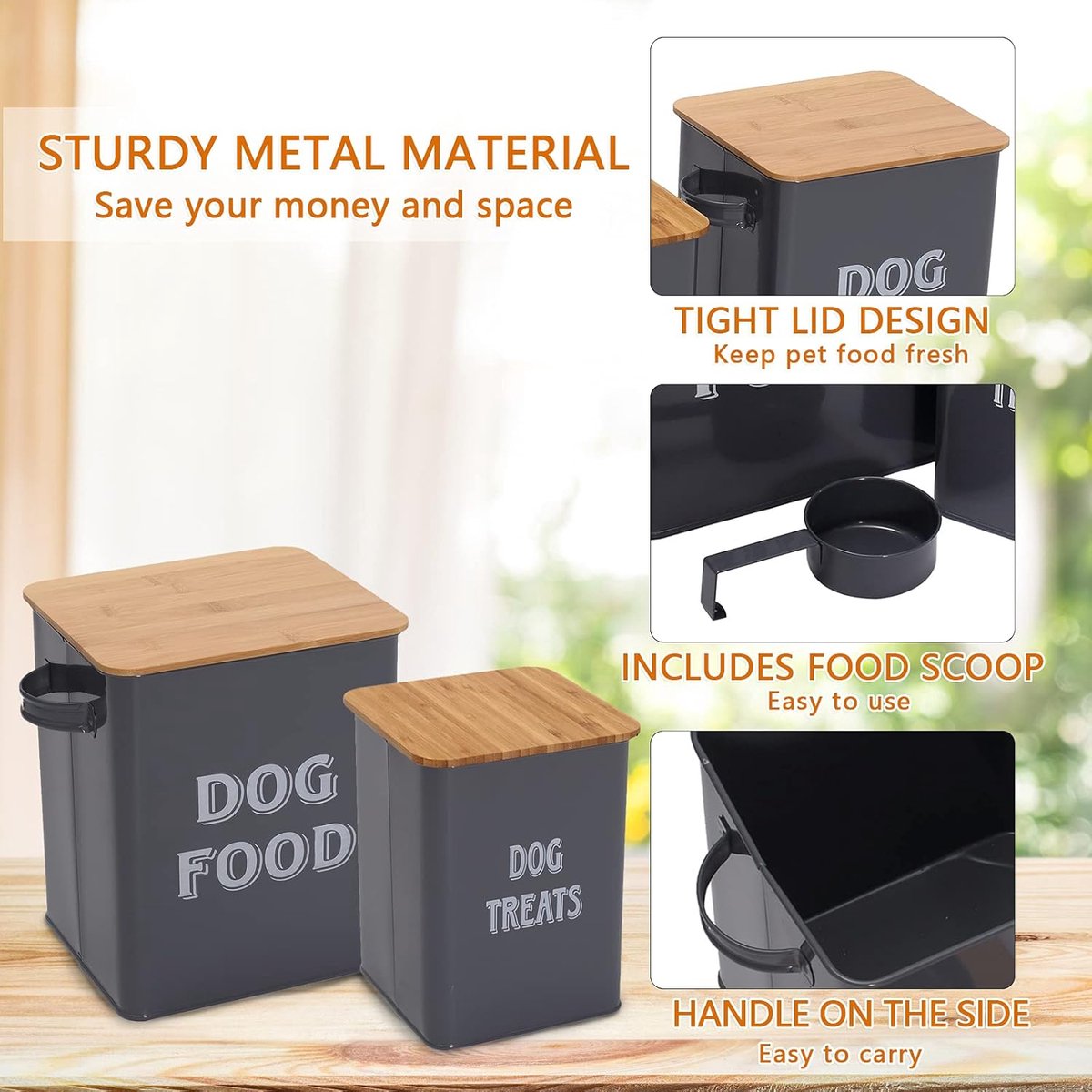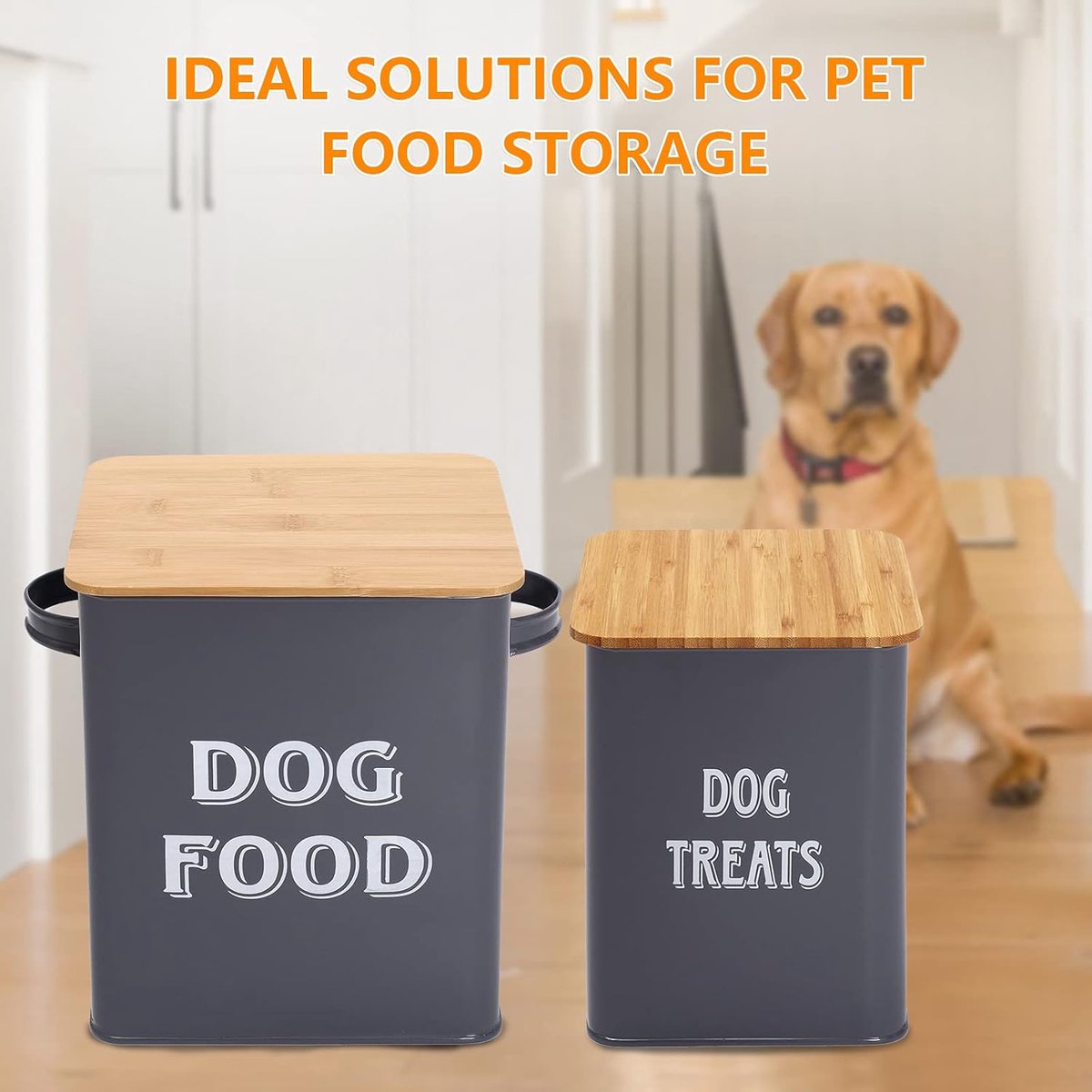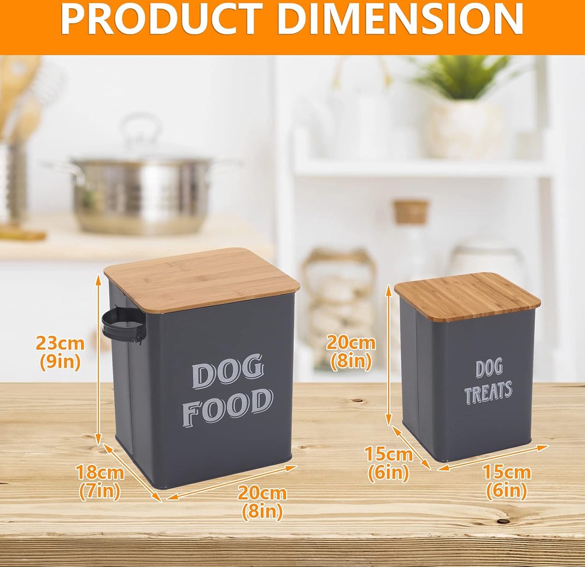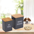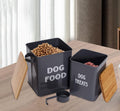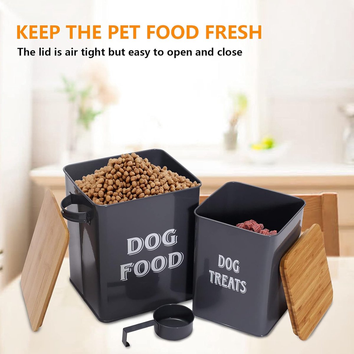 Dierenvoercontainer, opbergbox voor hondenvoer, voederbox met schep en luchtdicht houten deksel, opslag van levensmiddelen en organisatie-grijs