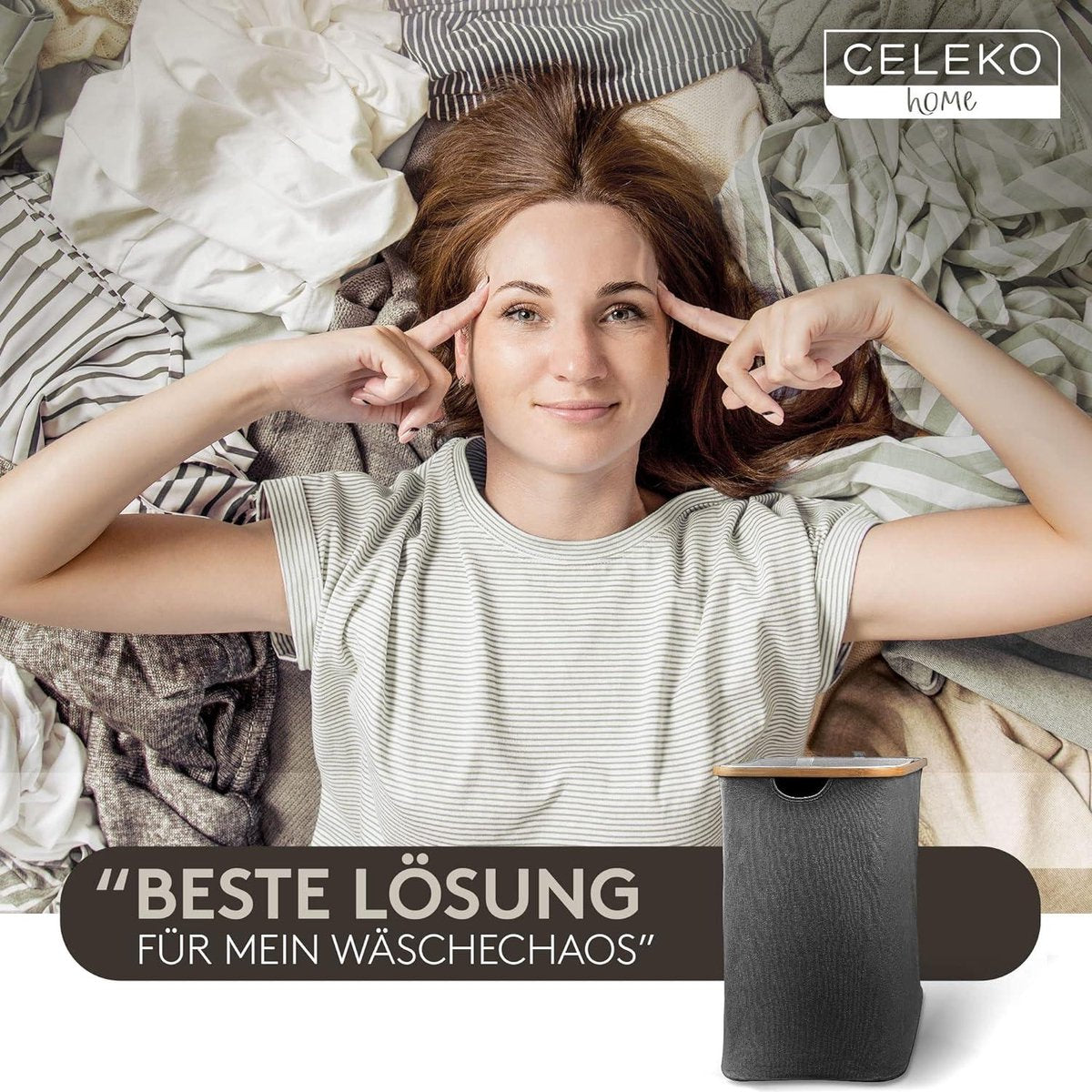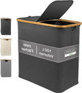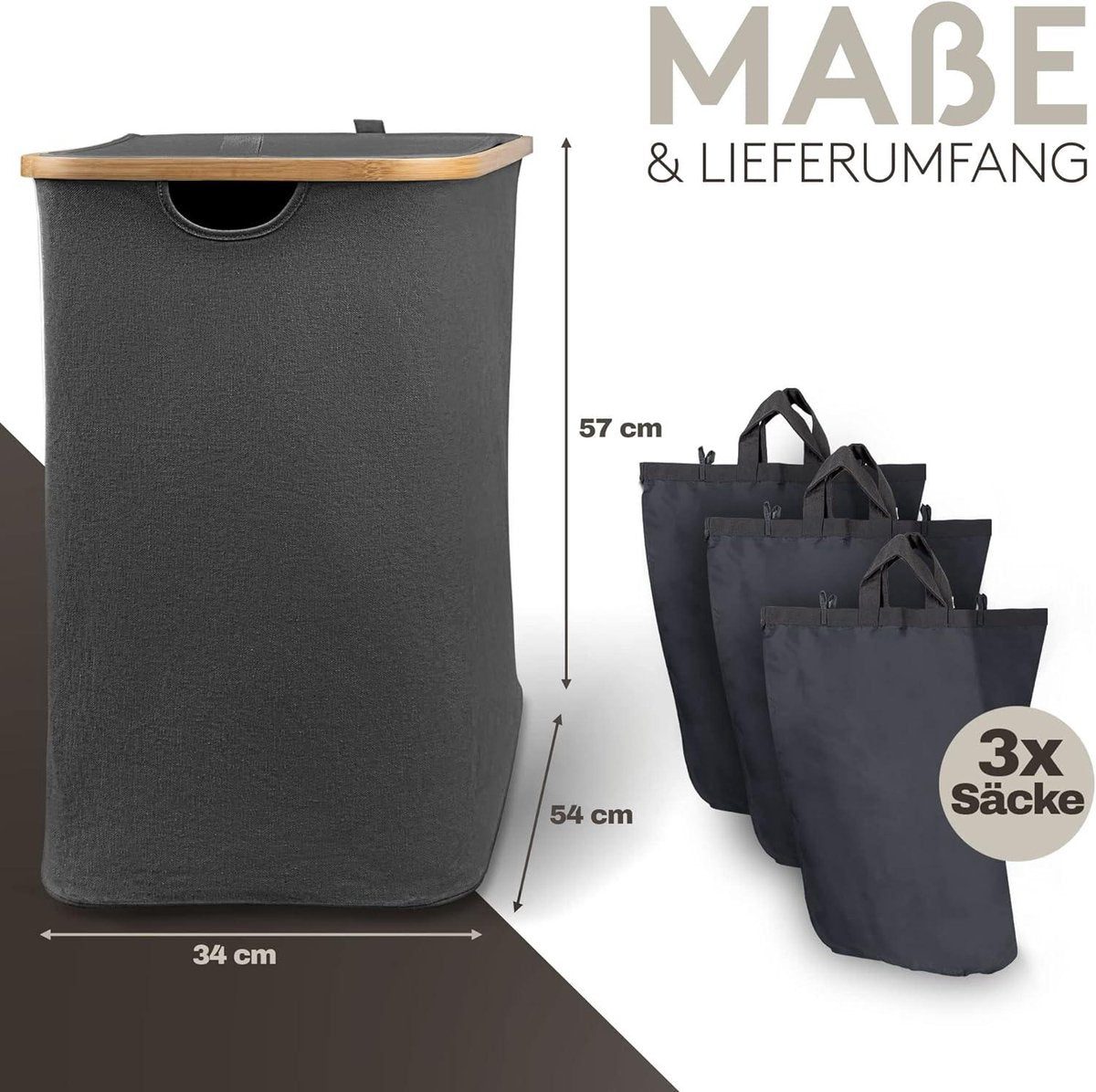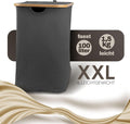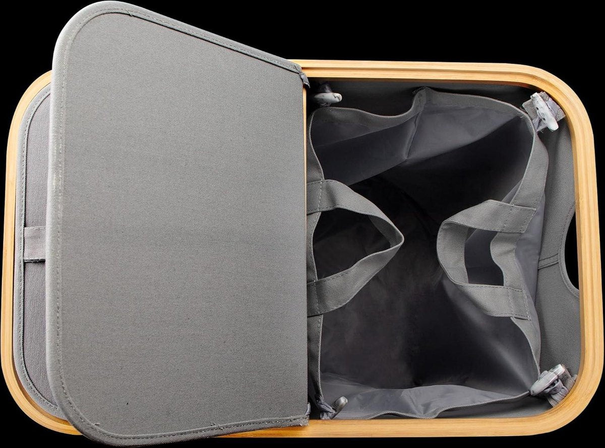 Donker Wasmand 2 vakken met deksel 100 liter bamboe-stof groot wassorteerder - donkergrijs antraciet zwart - milieuvriendelijk en duurzaam