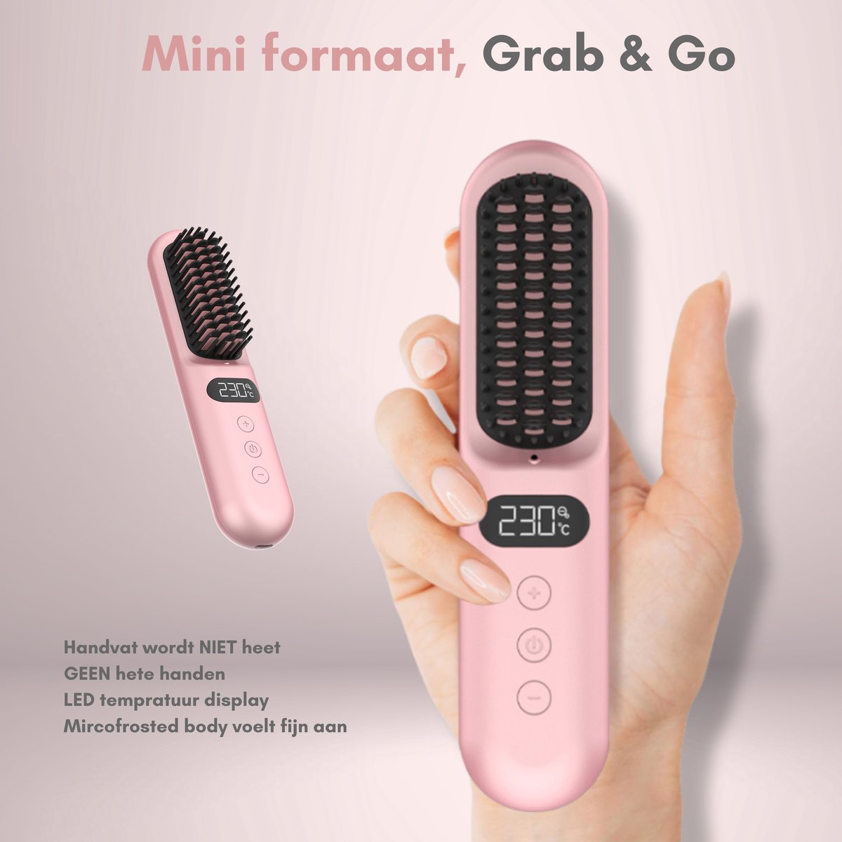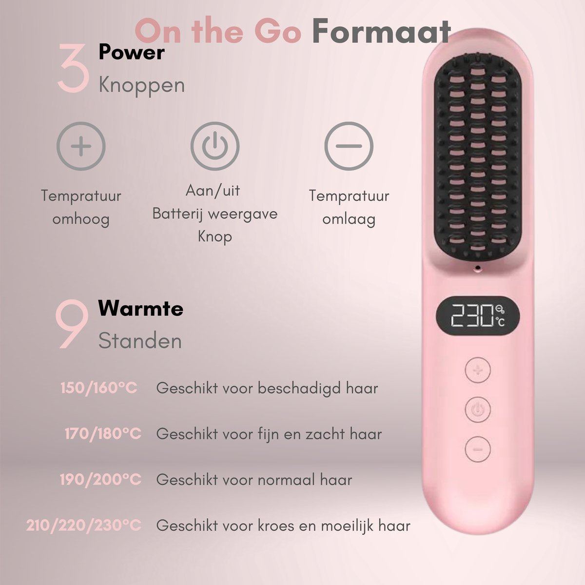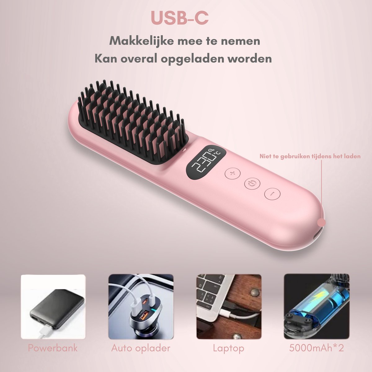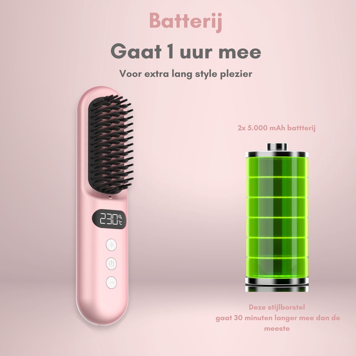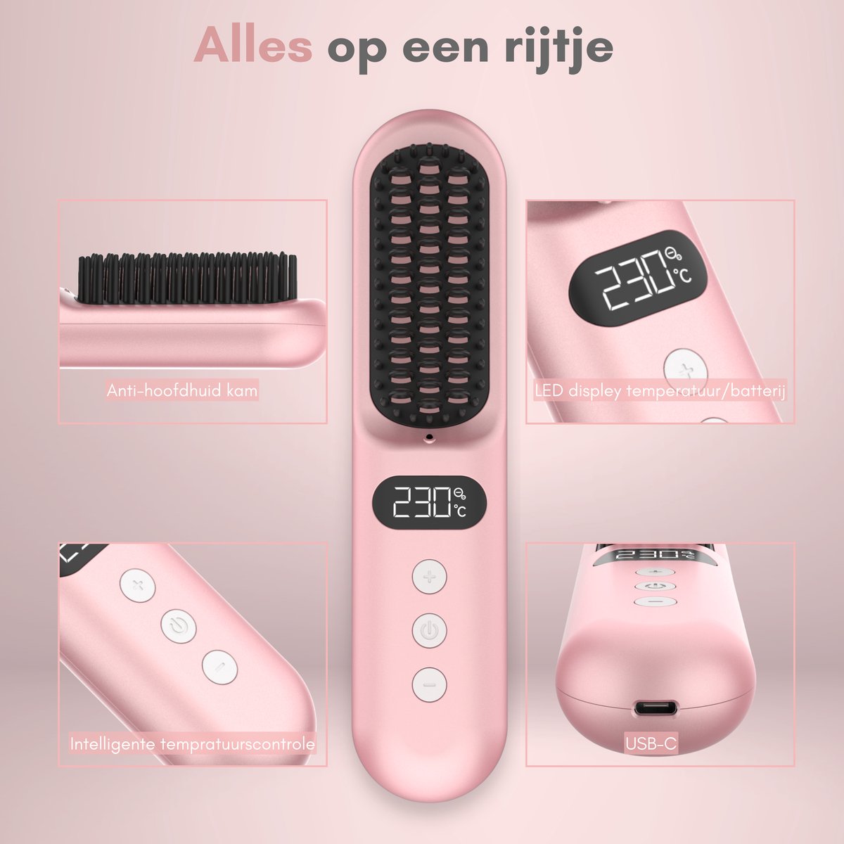 Draadloze Stijlborstel - LED - 2024 Model - Sinterklaas - Kerst - Roze - 230 graden - Stijlkam - Stijlborstels - Warmte borstel - Straight Brush - Elektrische haarborstel - Stijltang - Fohnborstel - Draadloze fohn - Draadloze stijltang - Oplaadbaar