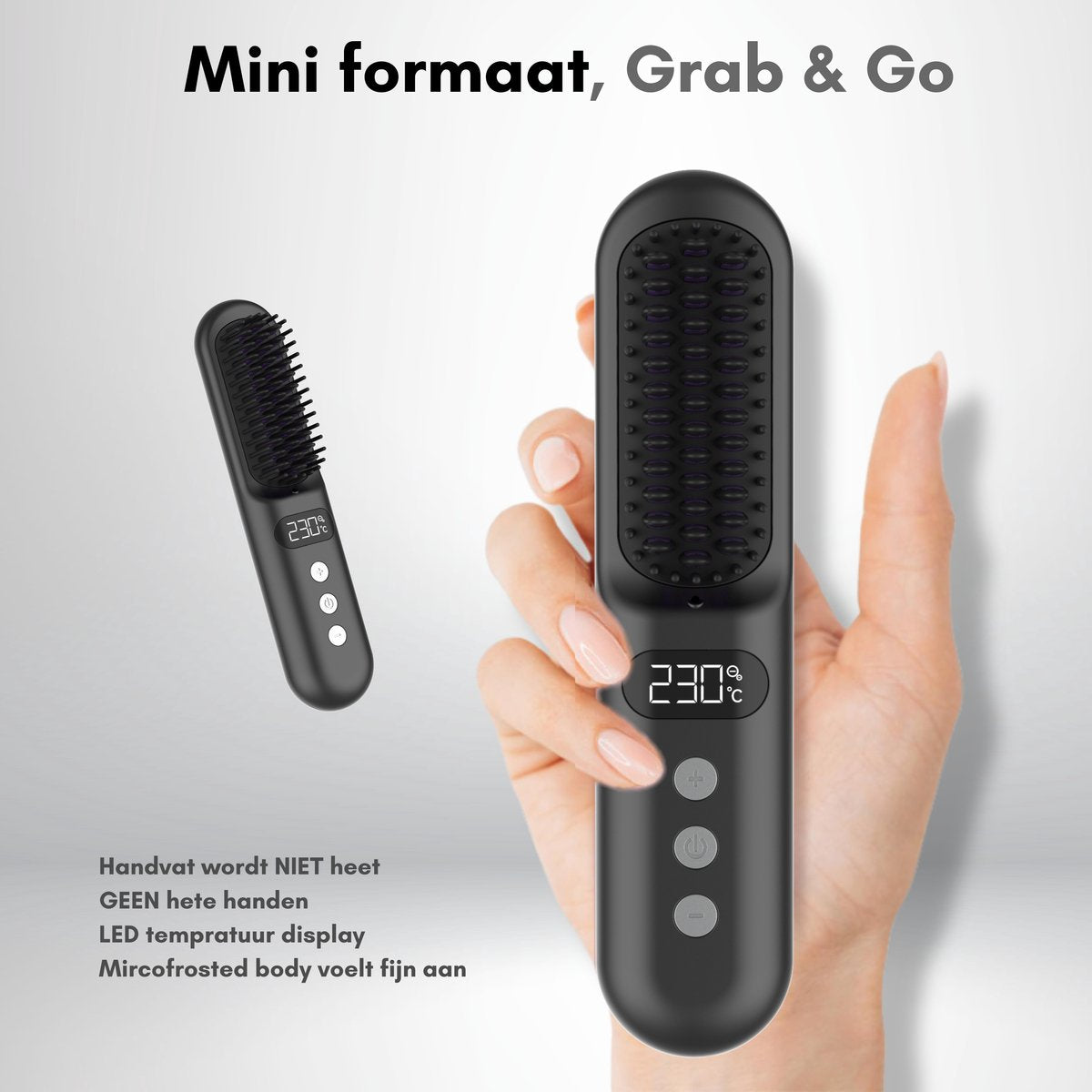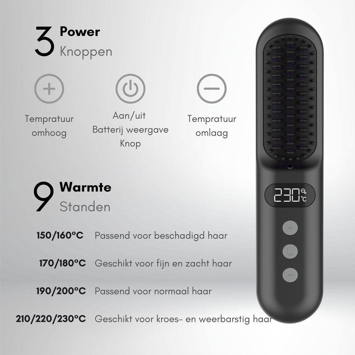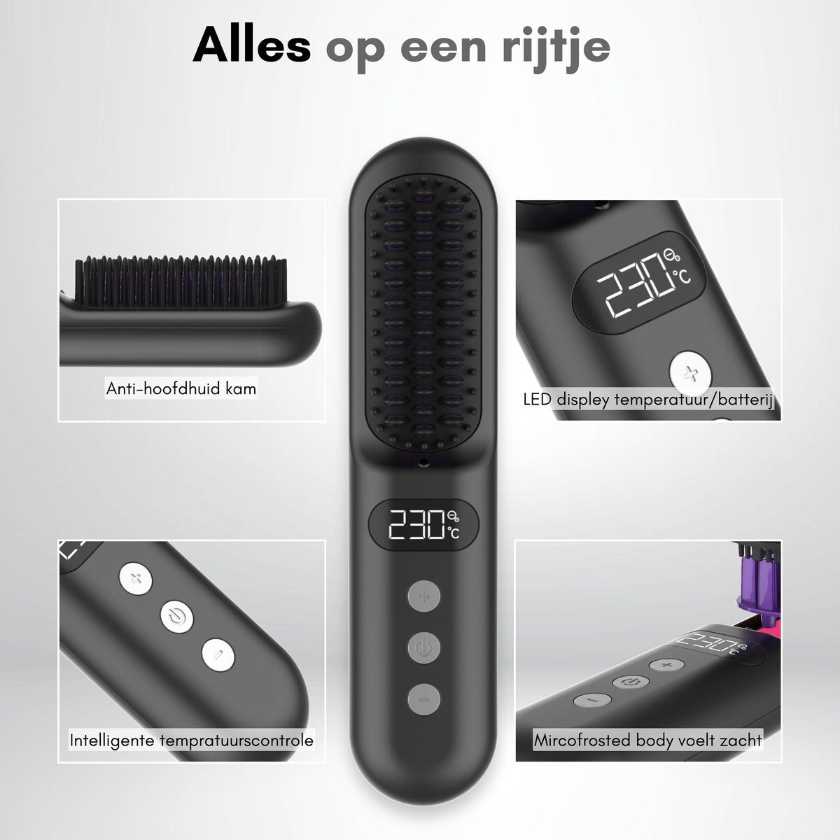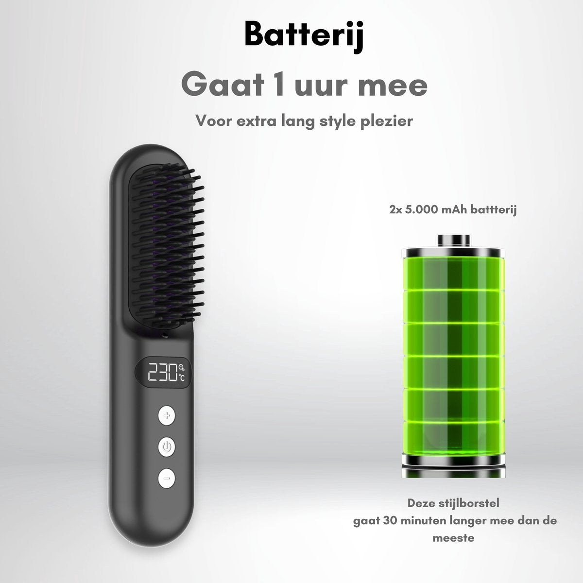 Draadloze Stijlborstel - LED - 2024 Model - Sinterklaas - Kerst - Zwart - 230 graden - Stijlkam - Stijlborstels - Warmte borstel - Straight Brush - Elektrische haarborstel - Stijltang - Fohnborstel - Draadloze fohn - Draadloze stijltang - Oplaadbaar