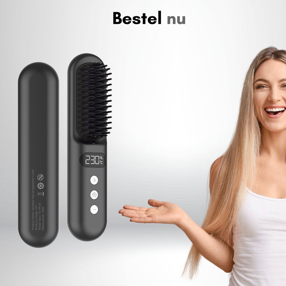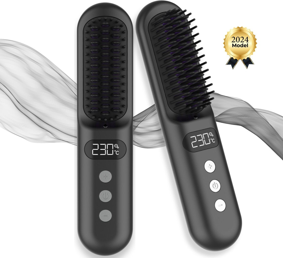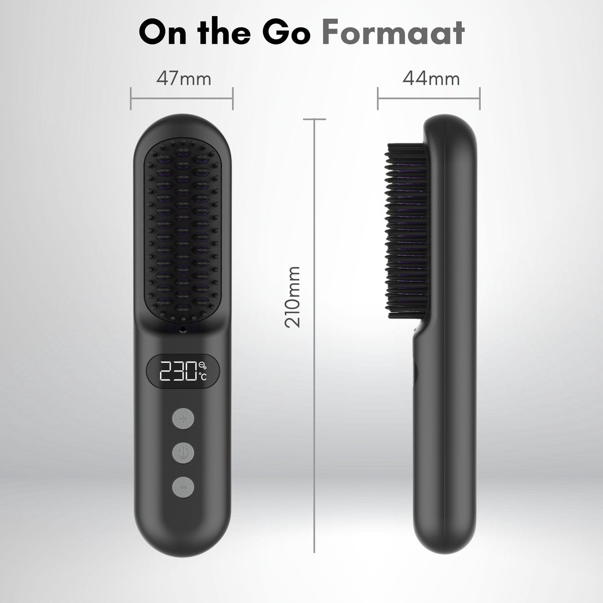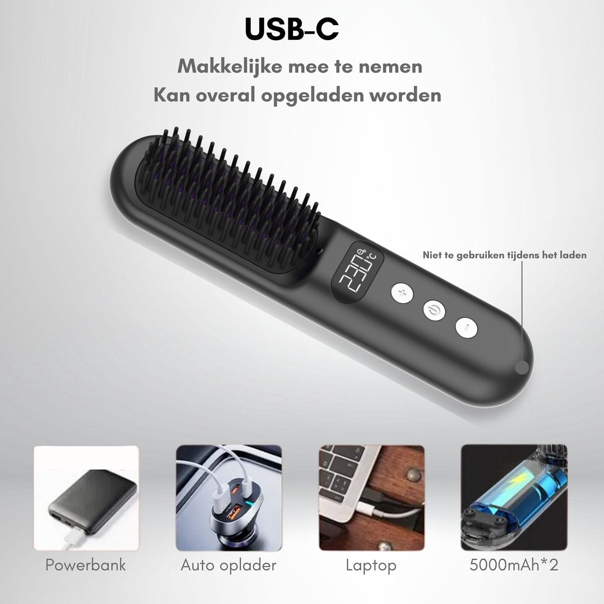 Draadloze Stijlborstel - LED - 2024 Model - Sinterklaas - Kerst - Zwart - 230 graden - Stijlkam - Stijlborstels - Warmte borstel - Straight Brush - Elektrische haarborstel - Stijltang - Fohnborstel - Draadloze fohn - Draadloze stijltang - Oplaadbaar