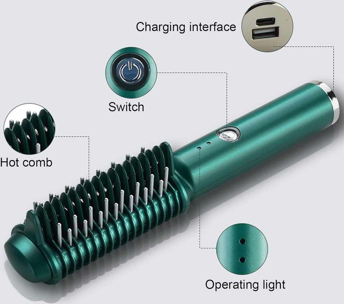 Draadloos gebruik Dankzij het oplaadbare USB-ontwerp biedt deze stijlborstel draadloze werking, wat het gemakkelijk maakt om hem overal mee naartoe te nemen. Ideaal voor onderweg, op reis of gewoon voor snel gebruik thuis.