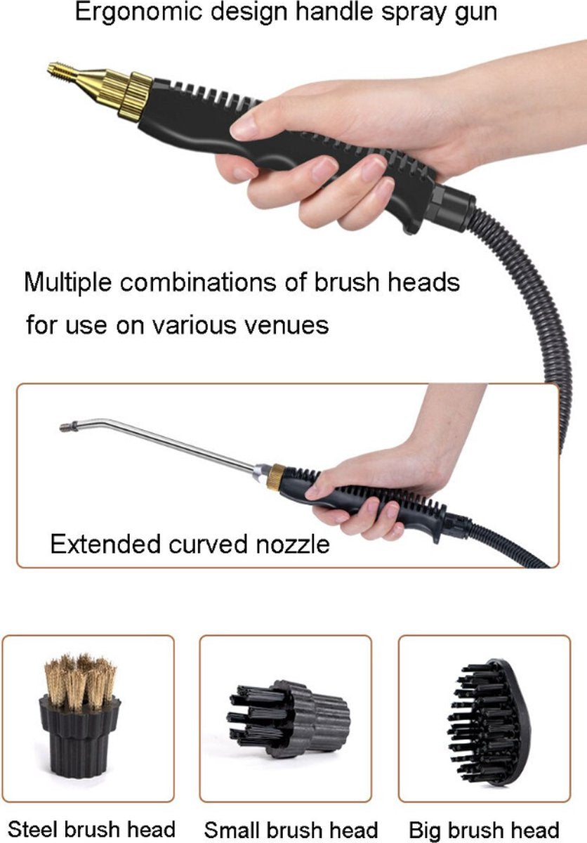 Meegeleverde Accessoires: De stoomreiniger wordt geleverd met een reeks handige accessoires, waaronder verschillende borstels en mondstukken, zodat je elke reinigingstaak met precisie kunt uitvoeren.