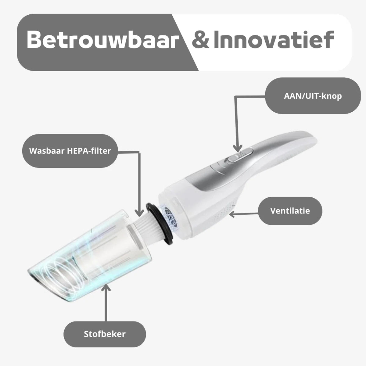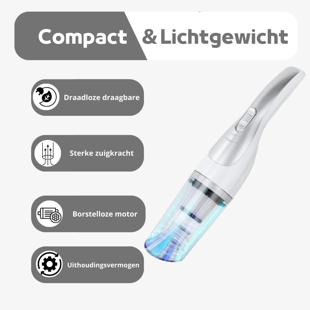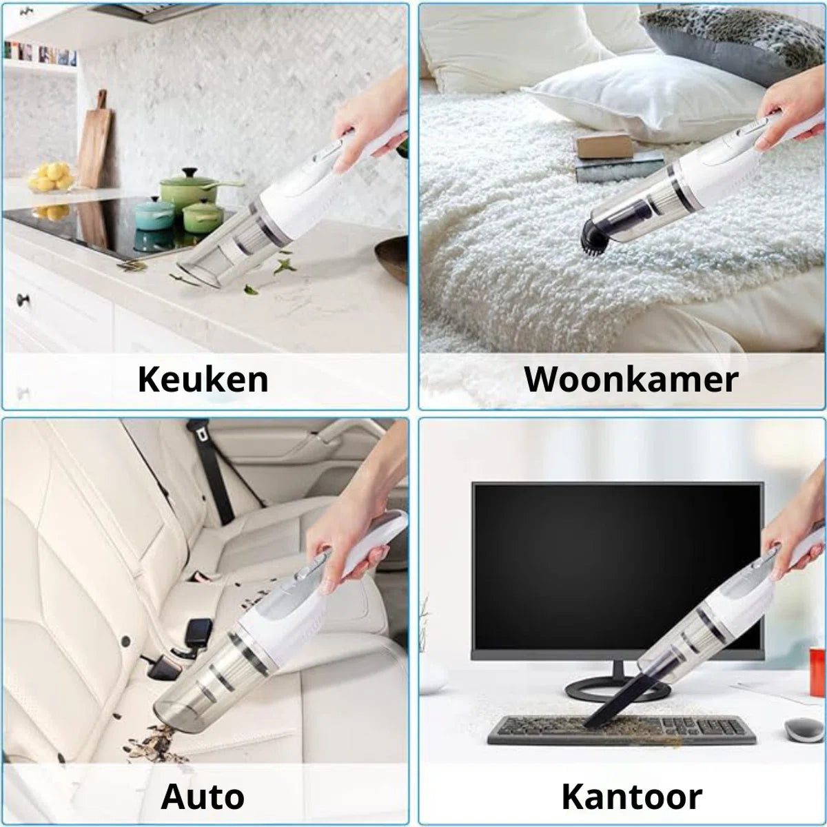 Ervaar het gemak van de draagbare handstofzuiger voor een snelle en efficiënte reiniging van uw huis en auto.