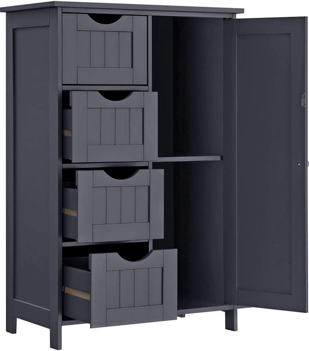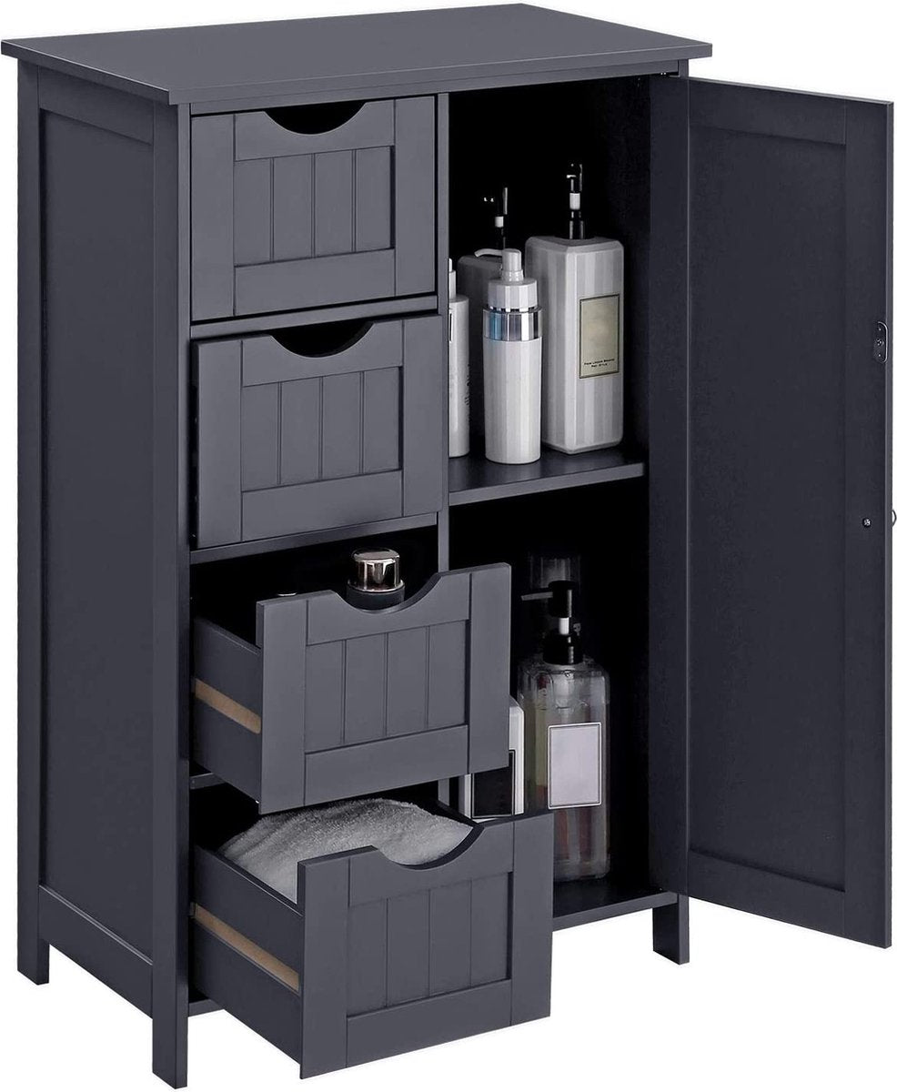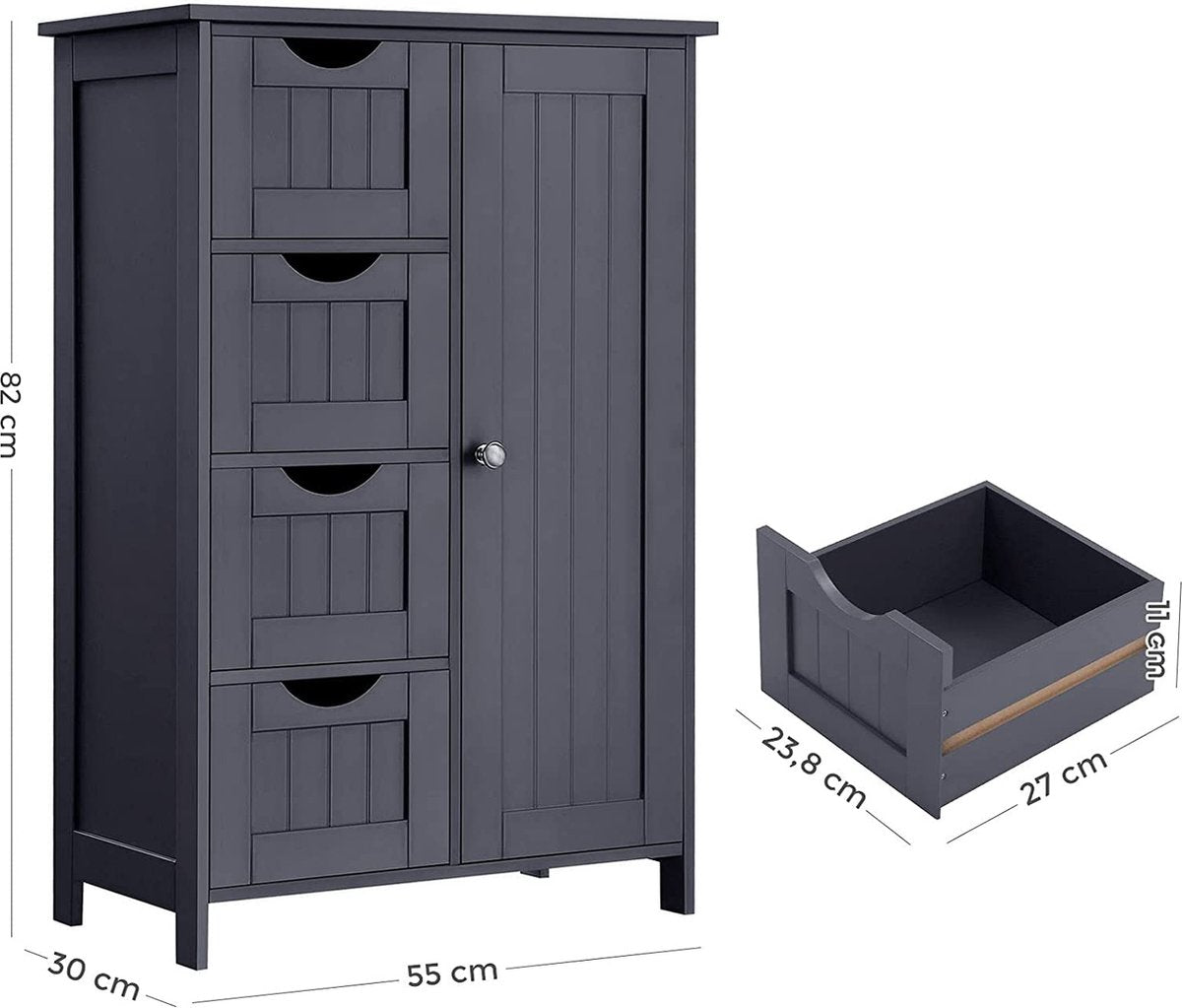 Dressoir badkamerkast, badkamerkast van hout bijzetkast commode met 4 laden, kastdeur, verstelbare plankvlak, woonkamer, keuken, hal, diep, vrijstaand, grijs LHC41GY