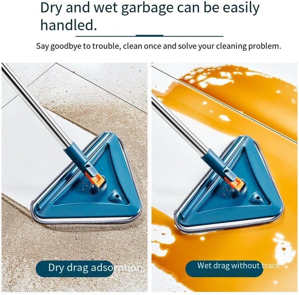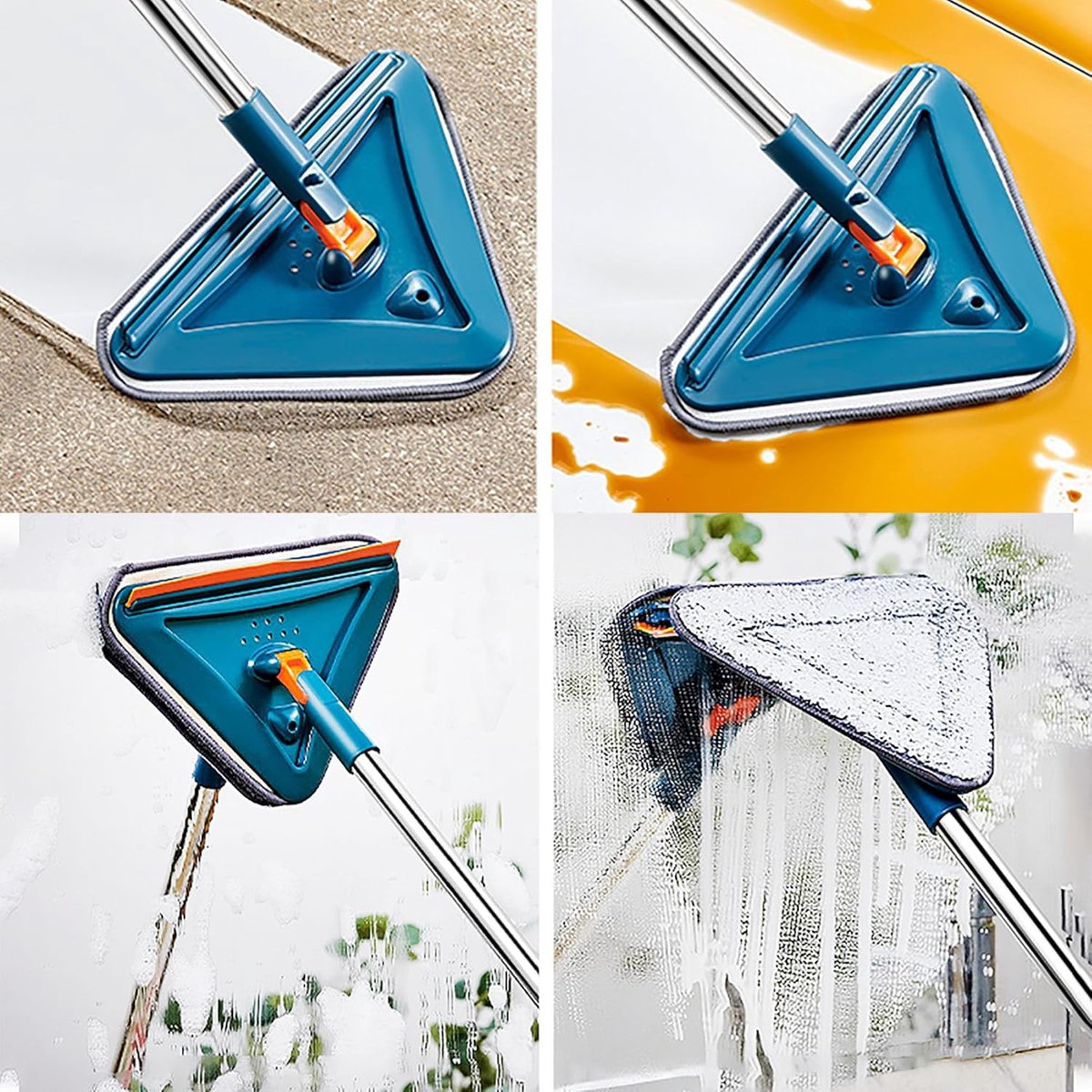360° roterende reinigingsmop】: de wandreinigingsmop kan in elke hoek worden ingesteld om u te helpen meerdere dode hoeken en moeilijk bereikbare gebieden te reinigen, inclusief banken, bedden, plafondhoeken, ramen, stopcontacten en banken aan de onderkant, plafondhoeken, bedden, rugruimte en andere dode straatjes. Een driehoekig kussen helpt om het huis schoon te maken. Telescopische handgreep: deze dweilgereedschapsset bevat vijf robuuste metalen verlengstaven, waarmee je de lengte van de handgreep naar behoefte gemakkelijk kunt aanpassen. Je hoeft niet te buigen of een ladder te gebruiken, deze intrekbare driehoekige mop kan je rug beter beschermen. Het kan worden vergrendeld, zodat je de dweilkop tijdens het reinigen kunt vastzetten, zonder je zorgen te hoeven maken over onbedoelde demontage of rotatie. 【Nat en droog reinigen dweil】: u kunt een droge chenille pad gebruiken om stof van muren, plafonds en kasten te verwijderen en storende spinnenwebben in hoeken te elimineren. Ultrafijne vezelreinigingspads kunnen worden gebruikt om verschillende vloeren en muren te bevochtigen en te reinigen en zijn zeer geschikt om vuil te verzamelen en haren en vuil te verwijderen. Alle tapijten zijn machinewasbaar, herbruikbaar, en gemakkelijk te reinigen. 【Eenvoudig op te bergen en te gebruiken】: Behang kan in verticale hoeken worden opgeslagen om ruimte te besparen of aan muren te hangen. De 360 reinigingsmop kan hardhout, tegels, laminaat, stenen, beton enz. verwerken en is geschikt voor alle huizen. Een wandmop met lange handgreep helpt bij het schoonmaken