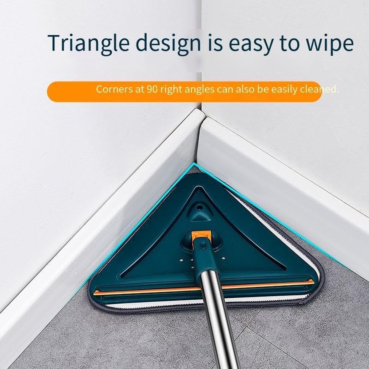 Driehoekige dweilmop met lange handgreep, 360 graden roterend, instelbaar, driehoekige mop, plint, reiniger, gereedschap, wasmachine, microvezel, mop voor ramen, vloer, muur, hardhout, tegels