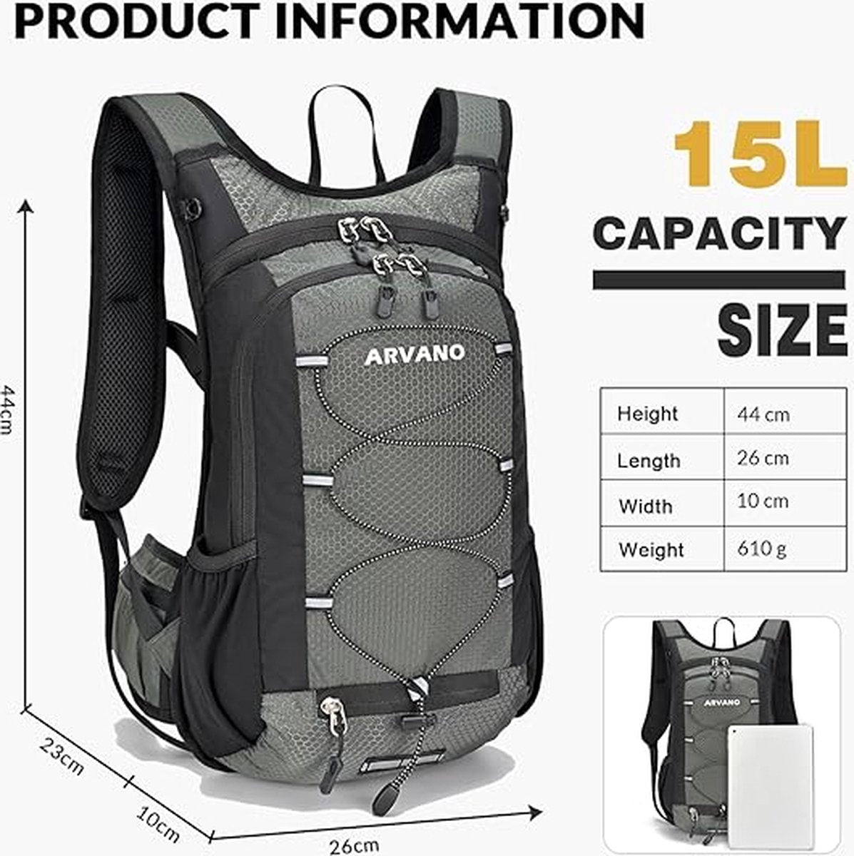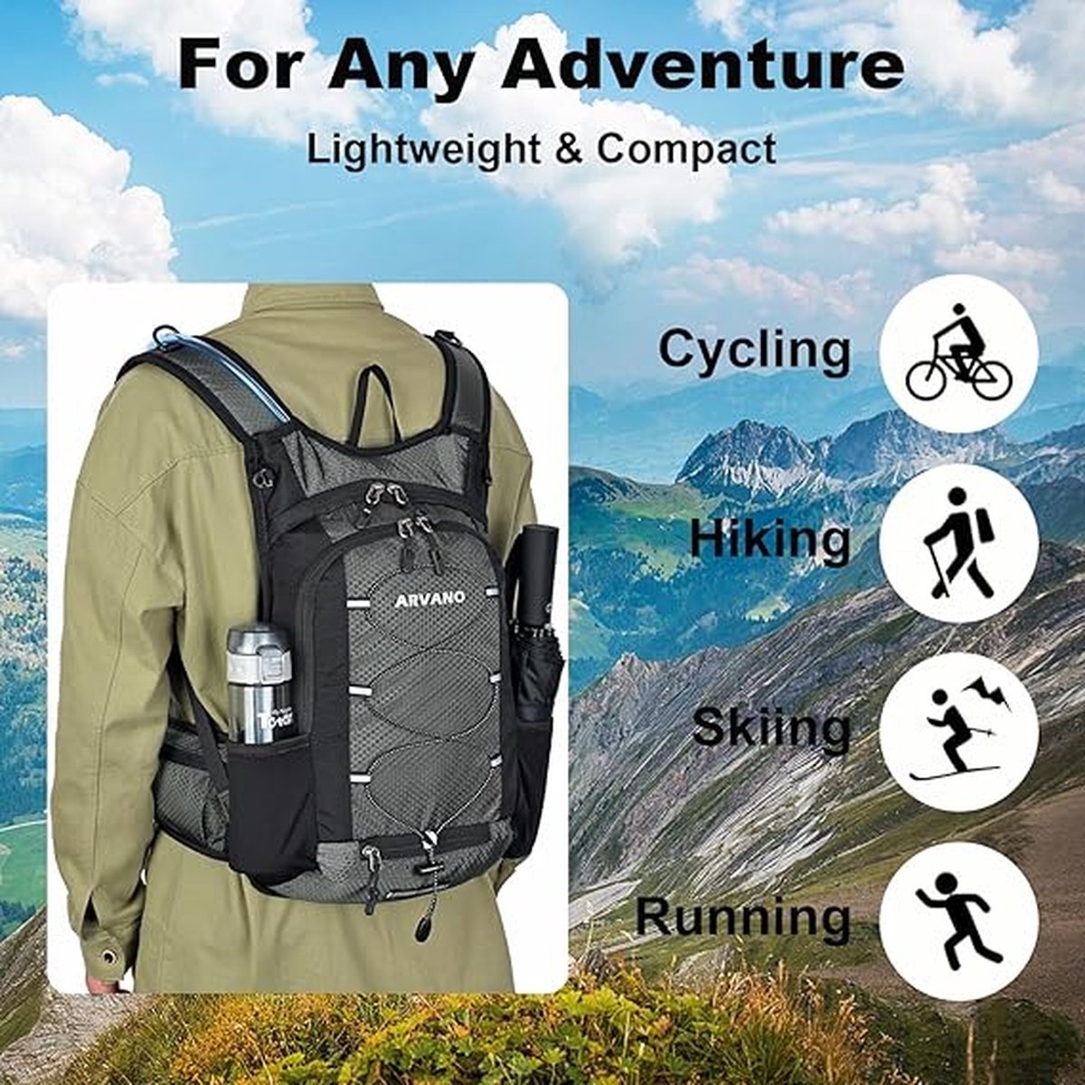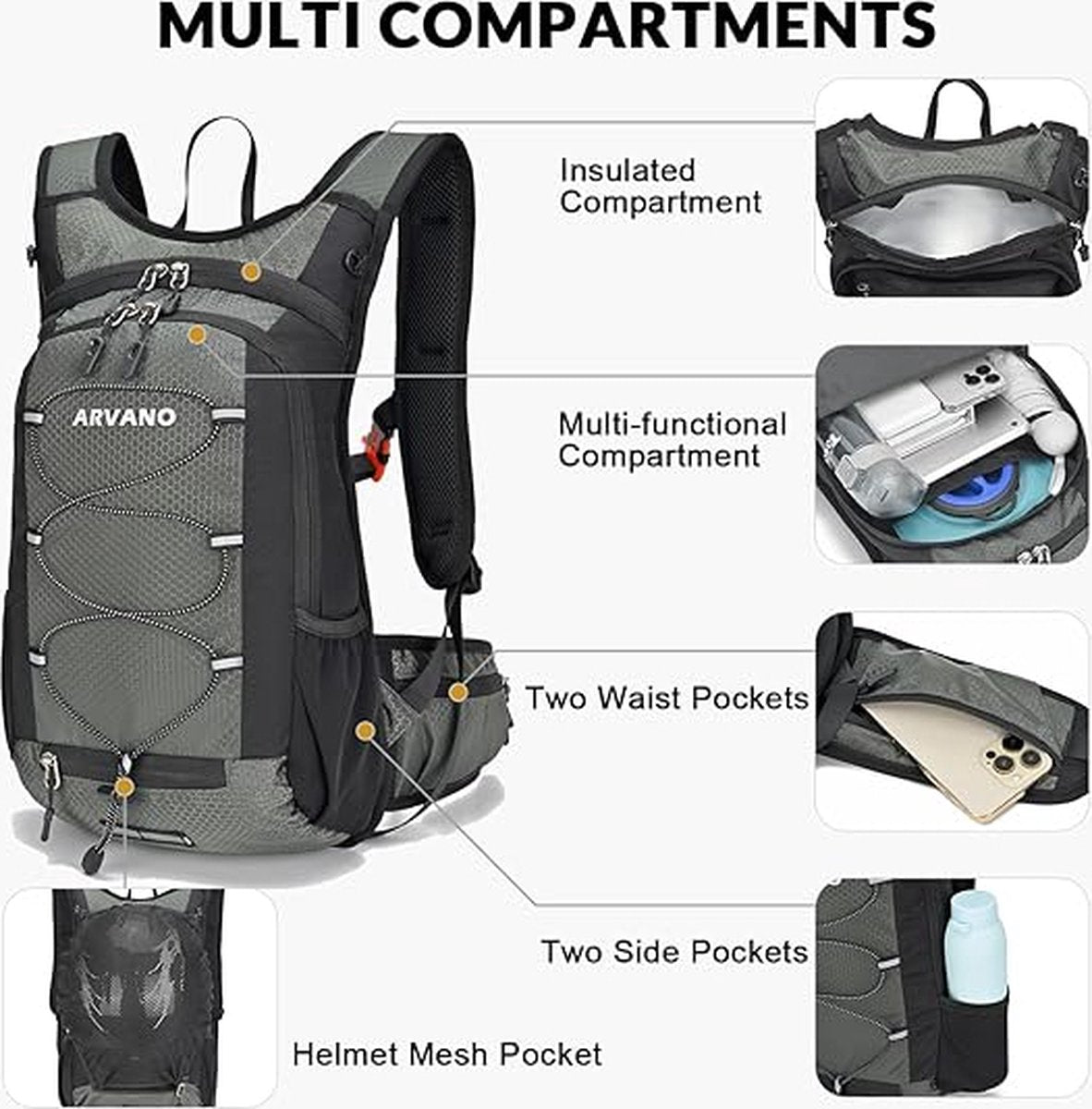 • COMPACT EN PRAKTISCH - Deze fietsrugzak heeft stevig ripstop nylon en stevige metalen ritsen. Ideaal voor wandelen, fietsen, skiën, hardlopen en wanneer je maar ruimte nodig hebt voor je spullen en voldoende water.