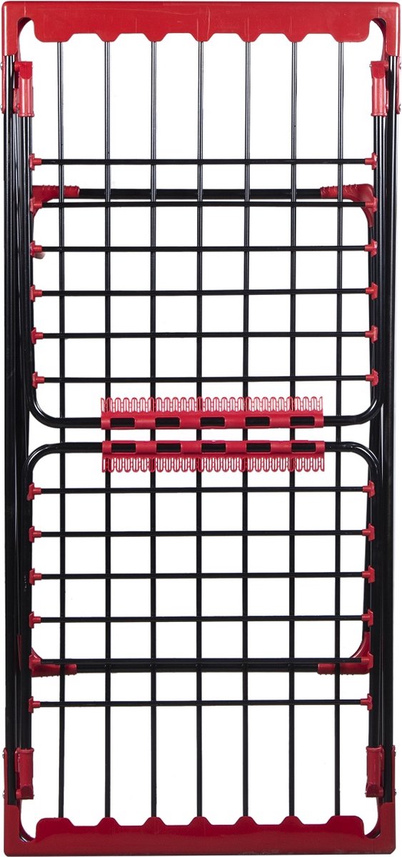 Dit grote droogrek is vervaardigd uit staal en aluminium en is geschikt om zowel binnen als buiten te gebruiken. Haal het echter wel binnen eens uw was droog is, want slechte weersomstandigheden zouden het staal kunnen aantasten.
