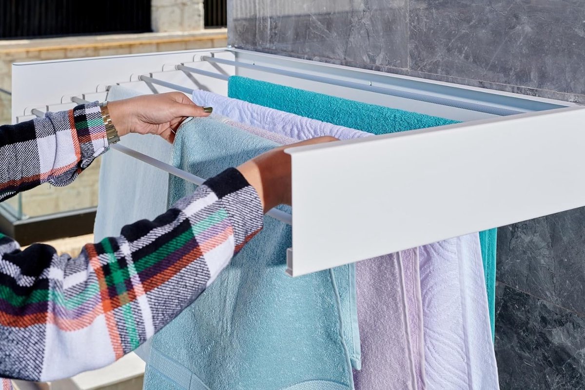 Droogrek, wandmontage, wasdroger, ruimte 70 cm lengte, uittrekbaar, wanddroogrek, opvouwbaar, droogrek aan de muur, voor buiten of binnen