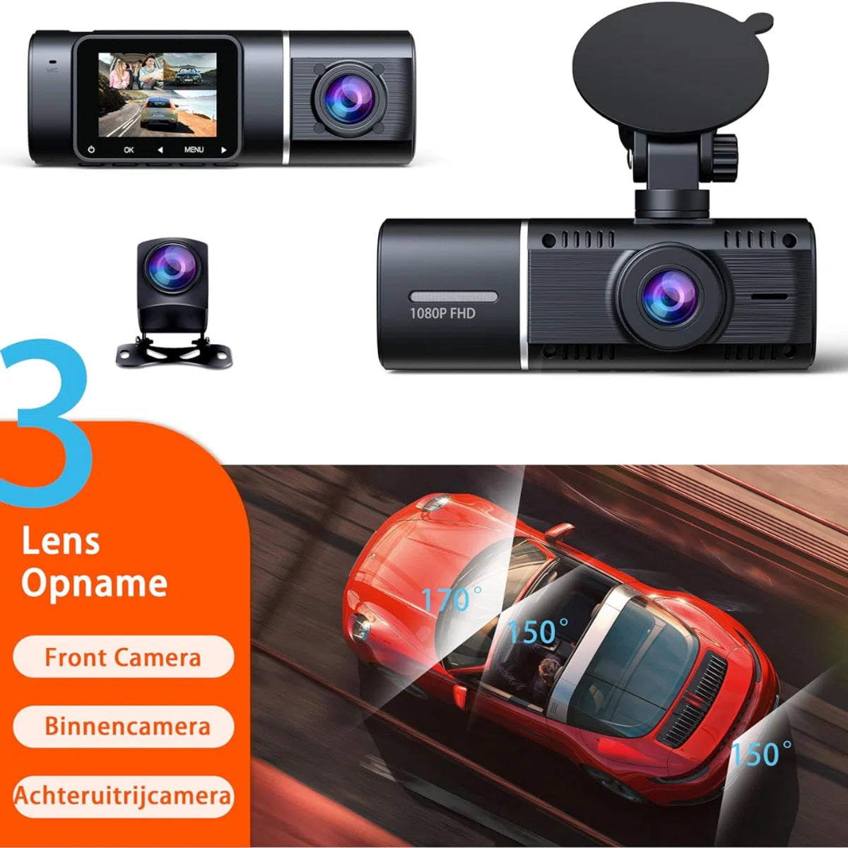 Veiligheid op de weg verzekerd met de 3-kanaals Auto Dual Dashcam