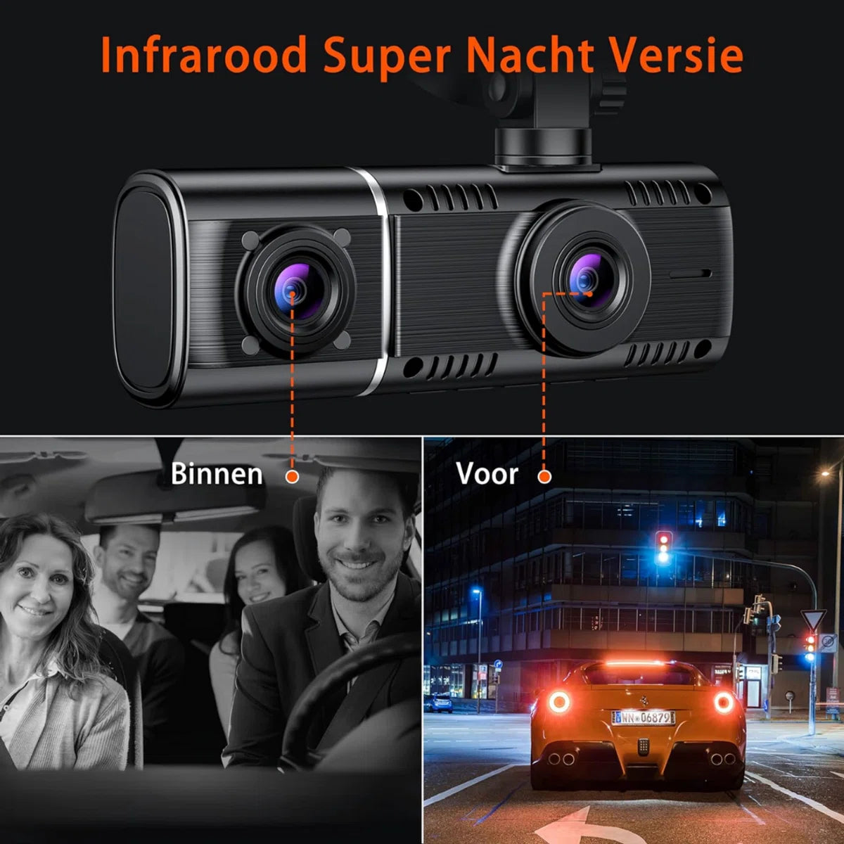 Uitgerust met infrarood nachtzicht levert deze dashcam verbeterd zicht bij weinig licht of duisternis, waardoor u duidelijke beelden kunt vastleggen van nachtelijke rijscenario's zonder verblinding of reflecties.