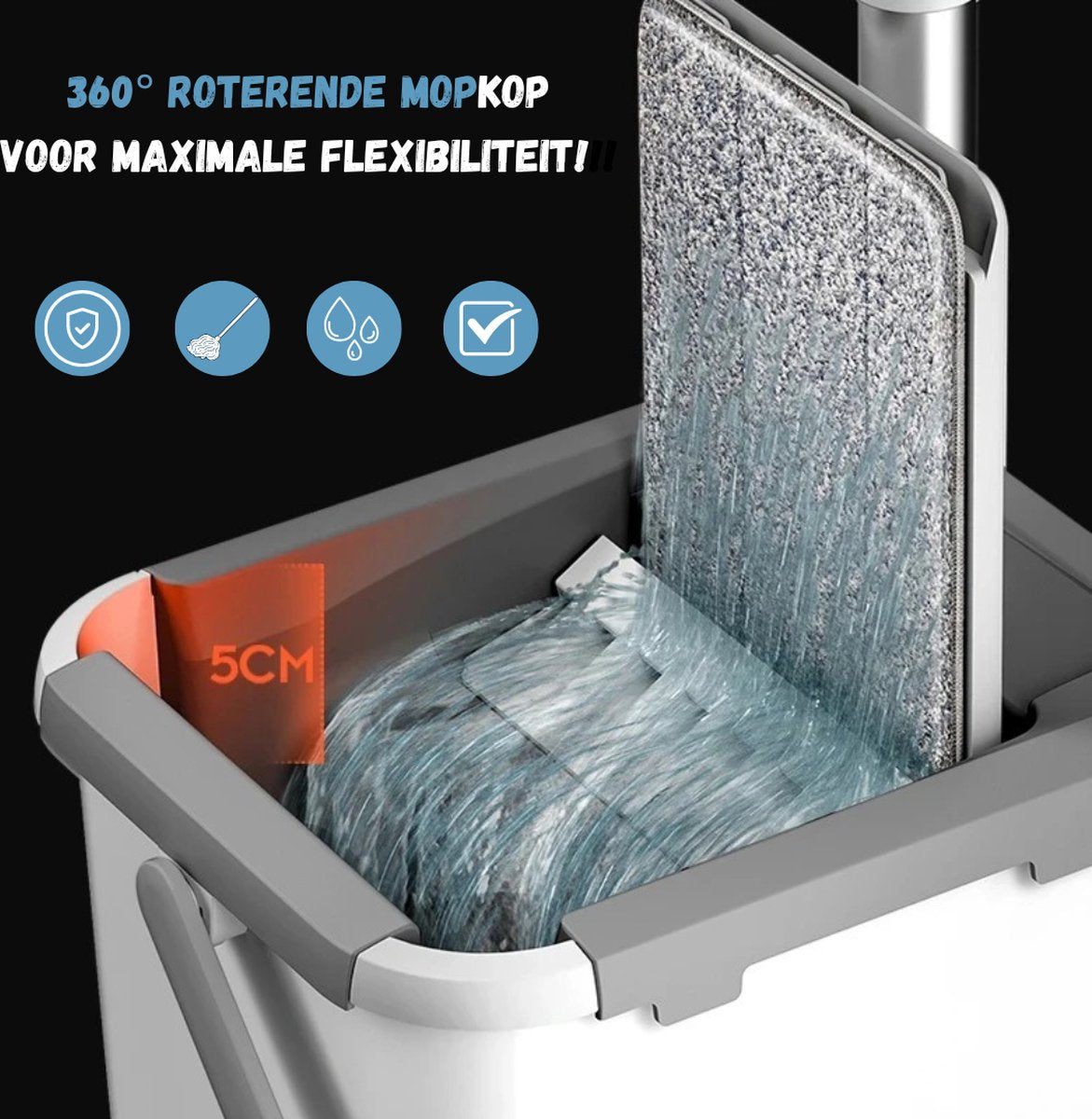 Dweil - 5-IN-1 - Dwijl En Emmer - Mop - Dweilsysteem - Dweilset & Vloerwissers - Inclusief 2 Dweildoeken Set - Wit