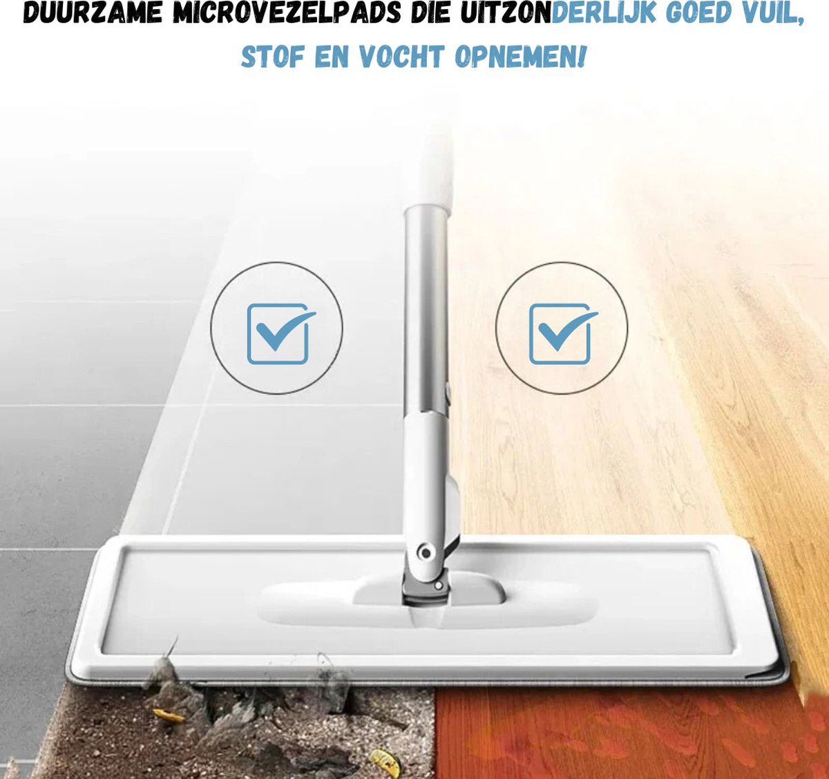 Onze dweil wordt geleverd met duurzame microvezelpads die uitzonderlijk goed vuil, stof en vocht opnemen. Deze pads zijn wasbaar en herbruikbaar, wat niet alleen kostenbesparend is, maar ook een milieuvriendelijke keuze. De microvezeltechnologie zorgt voor een streeploze en grondige reiniging van al uw vloeren.