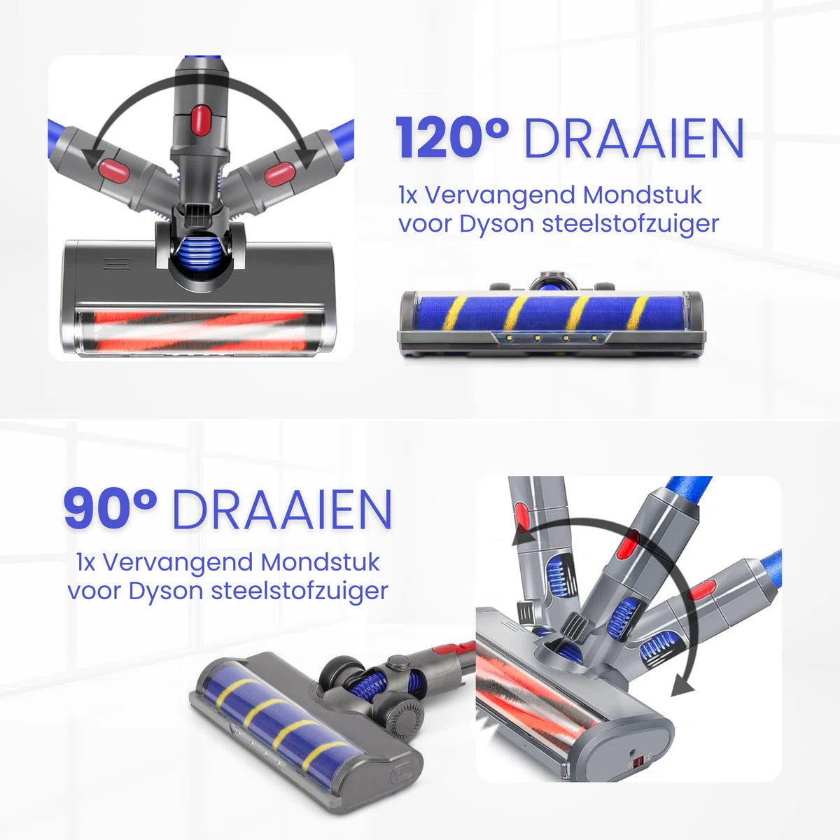 Dit veelzijdige mondstuk is ontworpen om te passen op een breed scala van Dyson-stofzuigermodellen, waaronder de V7, V8, V10, V10 Slim, V11 en V15. Of je nu een van de oudere modellen hebt of een van de nieuwere, geavanceerde Dyson-stofzuigers, ons mondstuk biedt de perfecte compatibiliteit en functionaliteit om jouw schoonmaak ervaring te optimaliseren. Je hoeft je geen zorgen te maken over welk Dyson model jij hebt, want dit mondstuk past op ze allemaal.