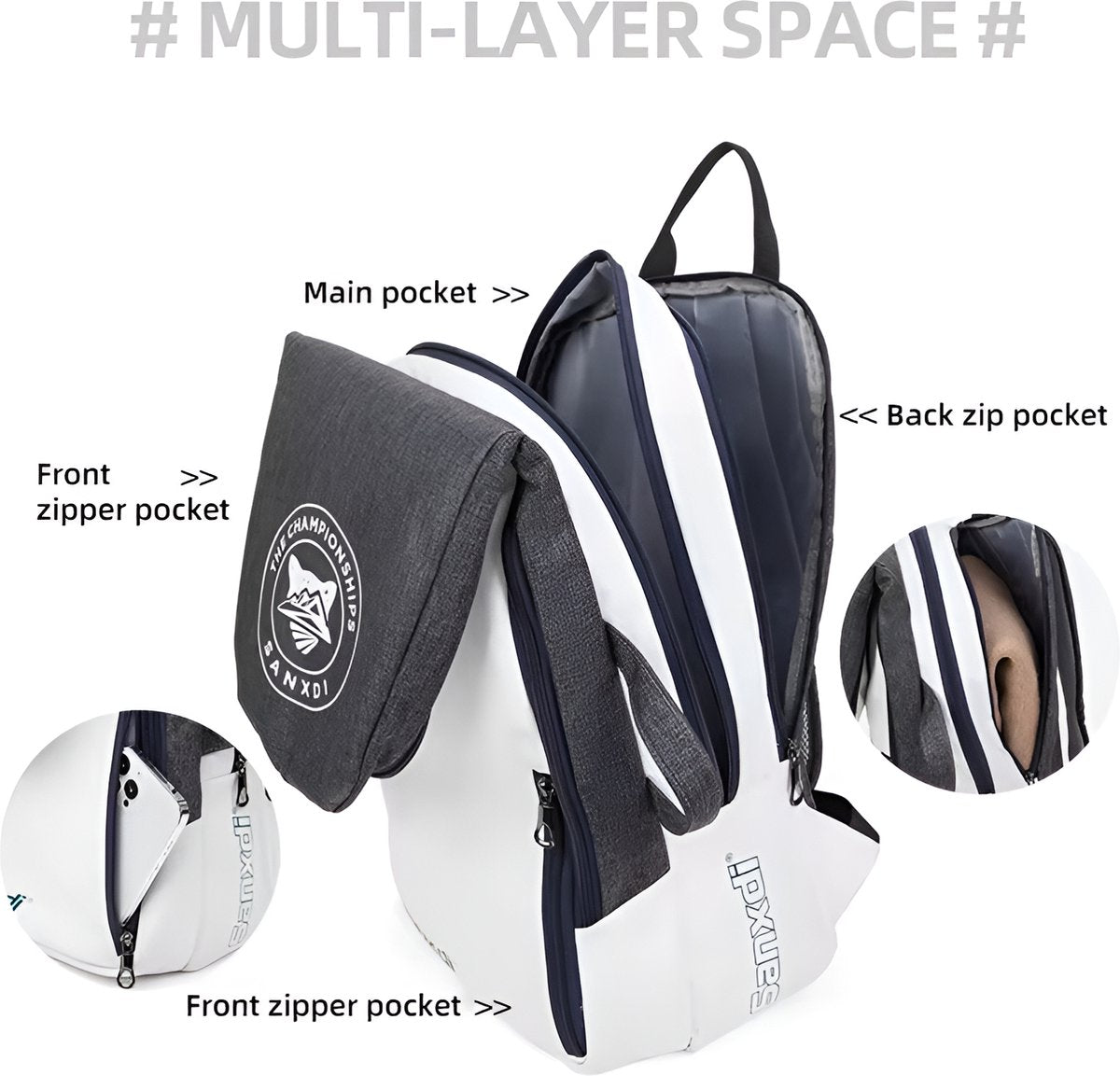 • Veelzijdig Gebruik: Of je nu tennis speelt, squash of andere racketsporten beoefent, deze tas is geschikt voor diverse activiteiten zoals reizen, wandelen of dagelijks gebruik.