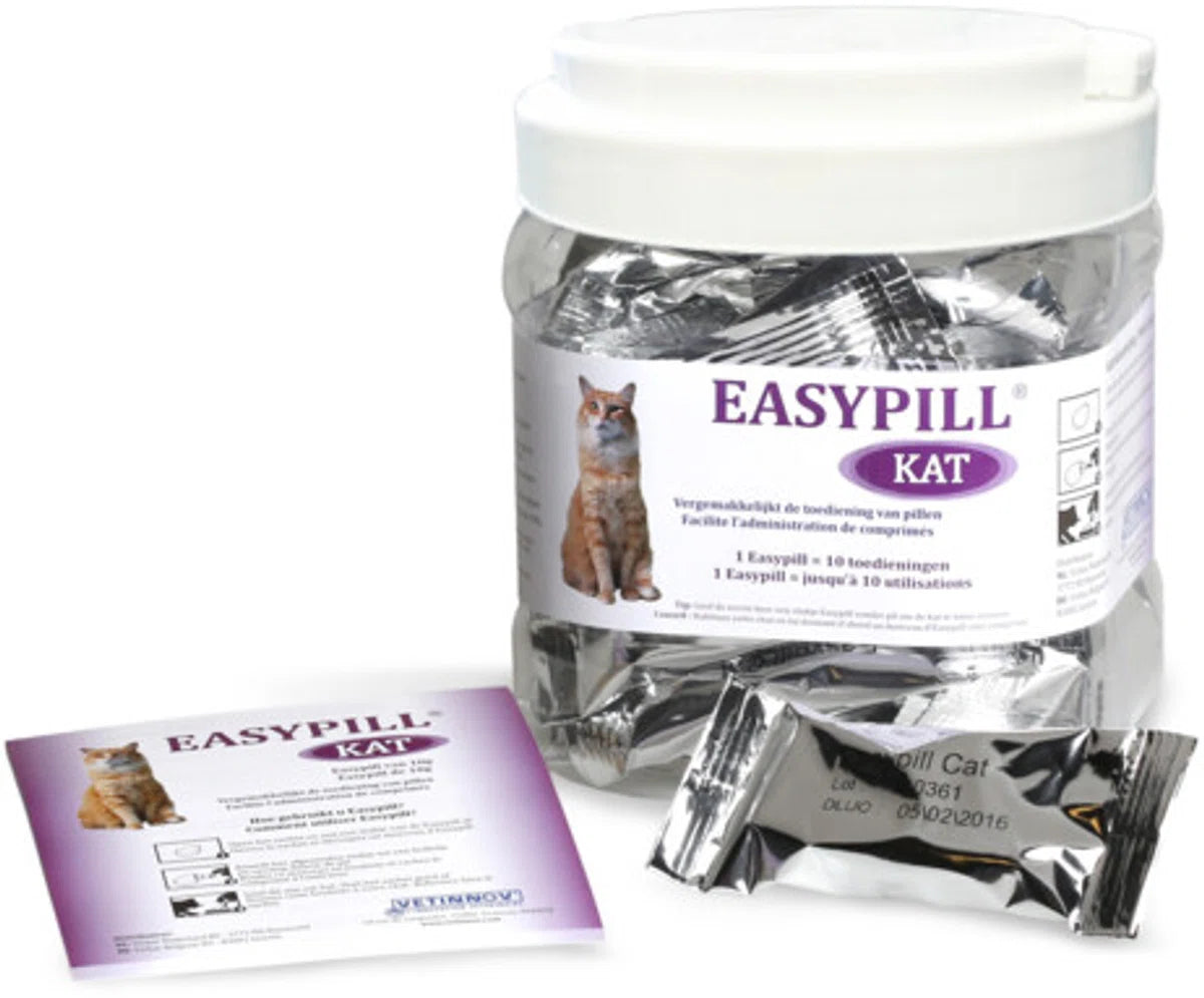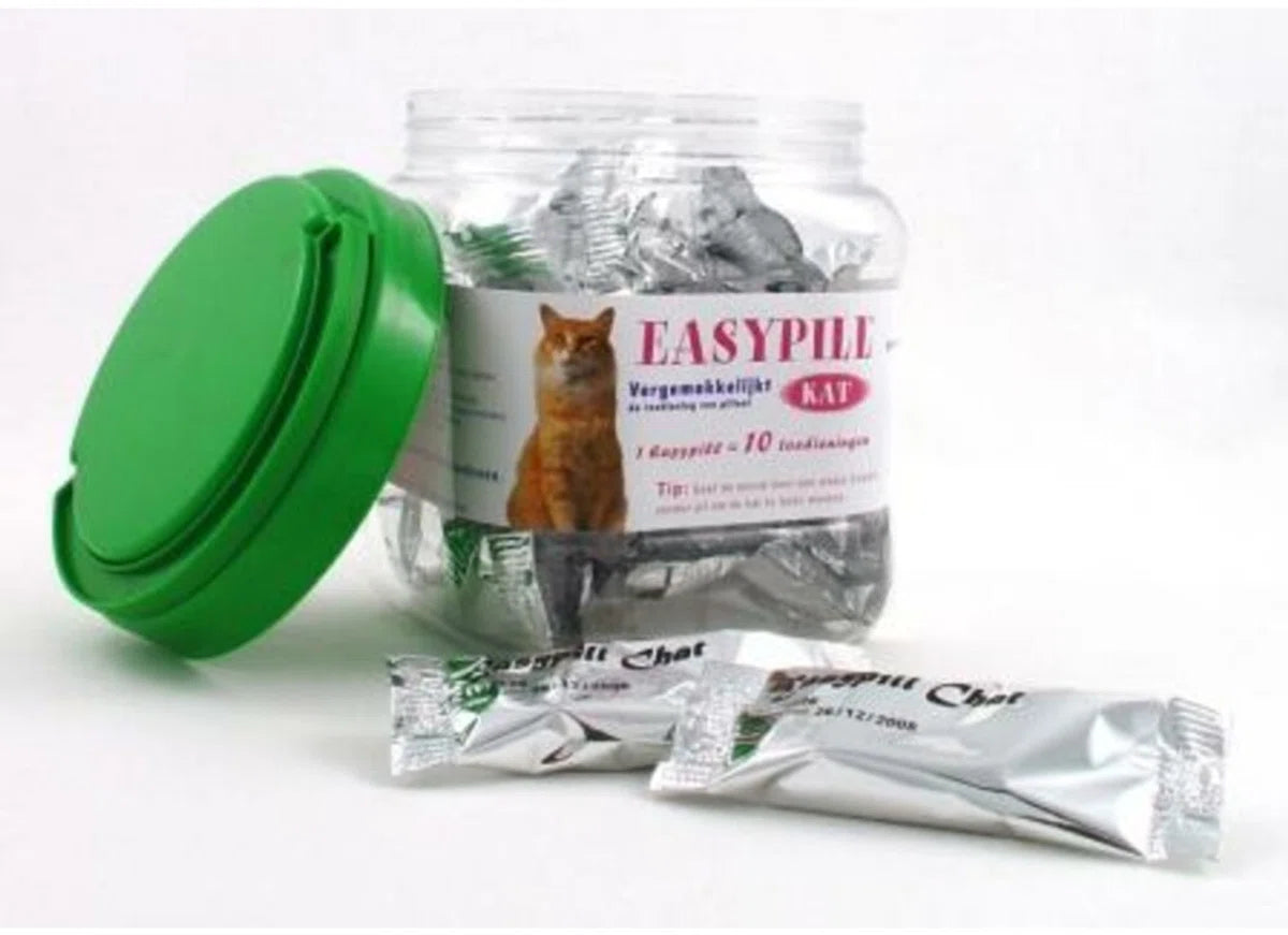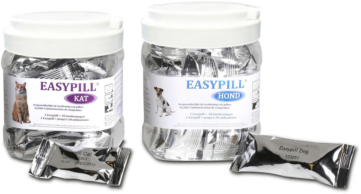 Easypill is een kneedbare, deegachtige en smakelijke substantie waarmee je de vorm en smaak van een ontwormingstablet of medicijn kunt maskeren. De Easypill vergemakkelijkt het toedienen van een tablet. Voor veel mensen met een kat of hond is het een bekend probleem: het geven van een tablet. Door de vorm en/of smaak weigeren veel huisdieren een tablet op te eten of door te slikken. Door Easypill om een tablet heen te kneden, vergroot je de kans dat het huisdier de tablet netjes opeet. Zo lijkt het voor jouw huisdier net een lekkere snack!
