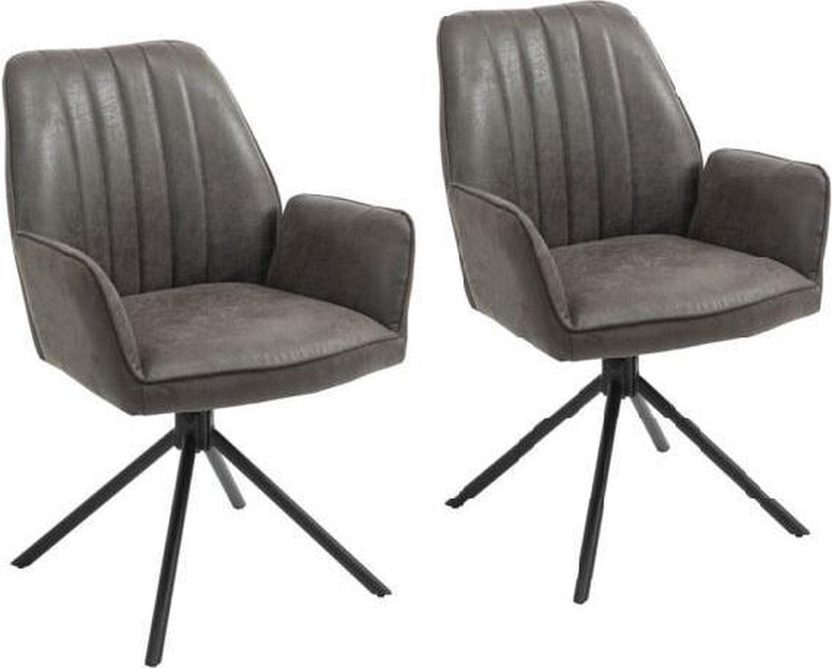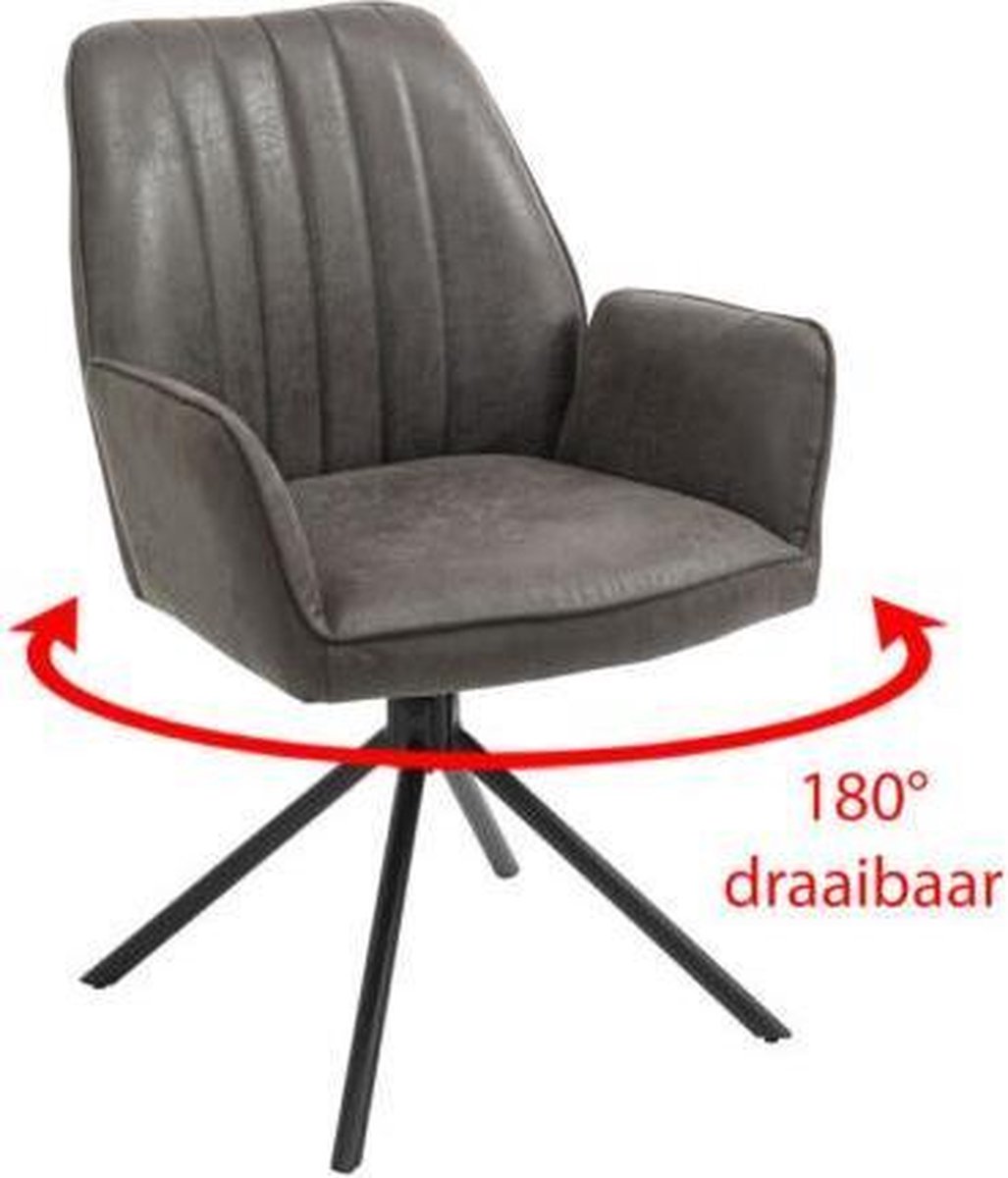 Eco-leer - 1x Eetkamerstoel Leon (draaibaar) - Eco-leer Graphite/Antraciet - metaal onderstel