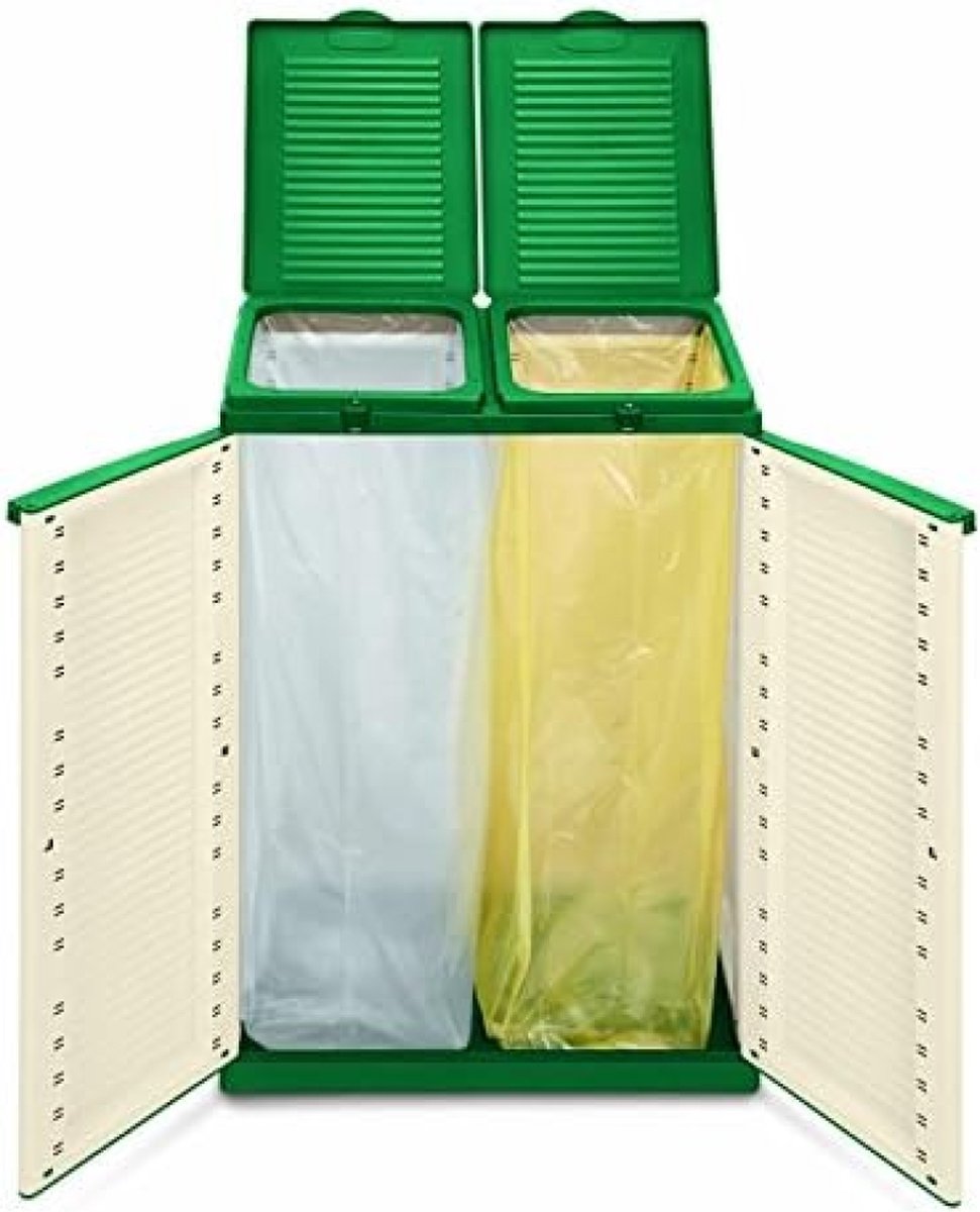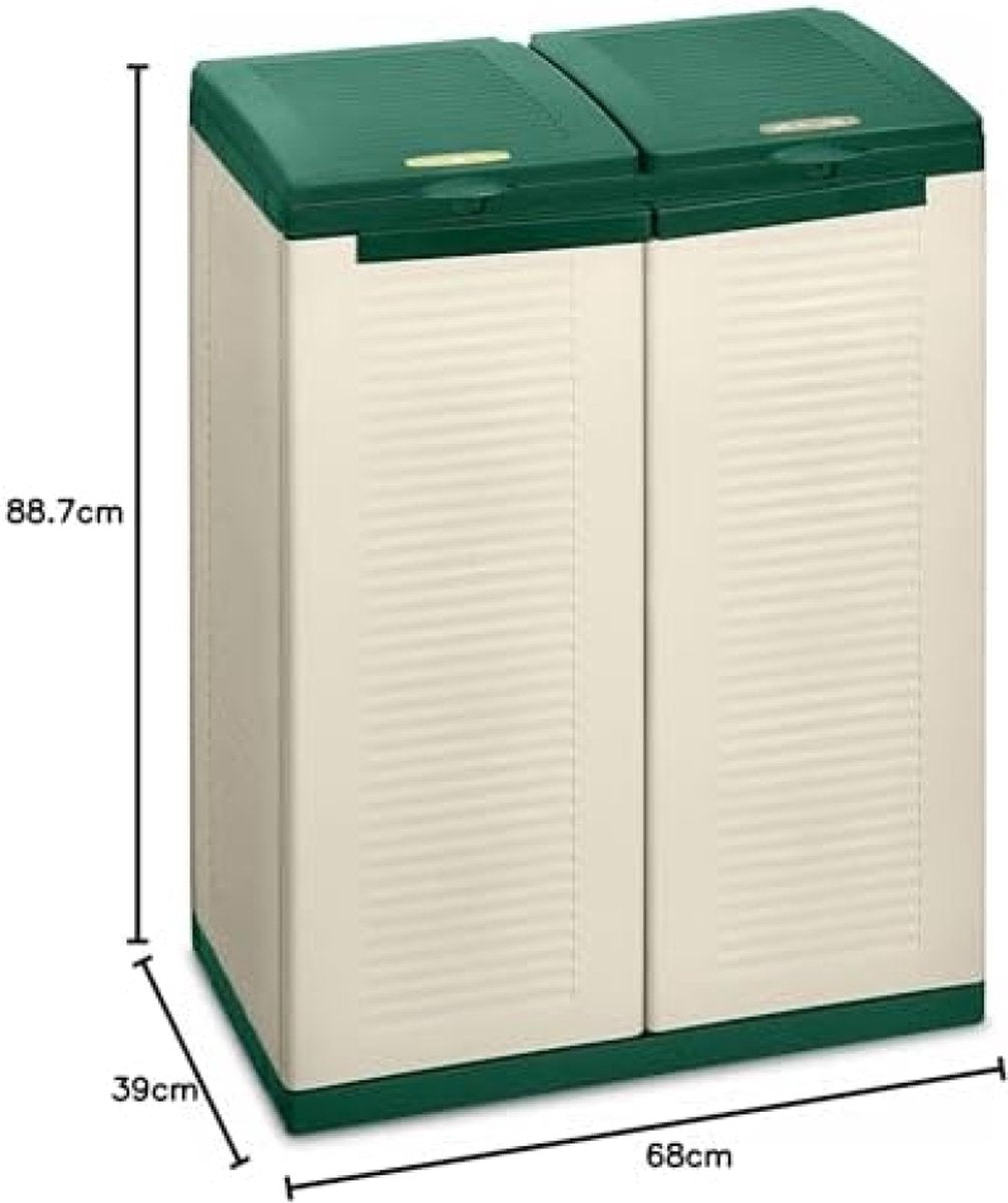 EcoTab 2 2 kast voor afvalscheiding, voor binnen en buiten, 2 aparte vakken, kleur: beige/groen, materiaal: kunststof, afmetingen: 68 x 39 x 88,7 cm