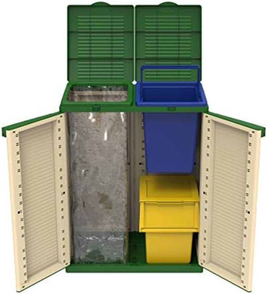 EcoTab 2 2 kast voor afvalscheiding, voor binnen en buiten, 2 aparte vakken, kleur: beige/groen, materiaal: kunststof, afmetingen: 68 x 39 x 88,7 cm