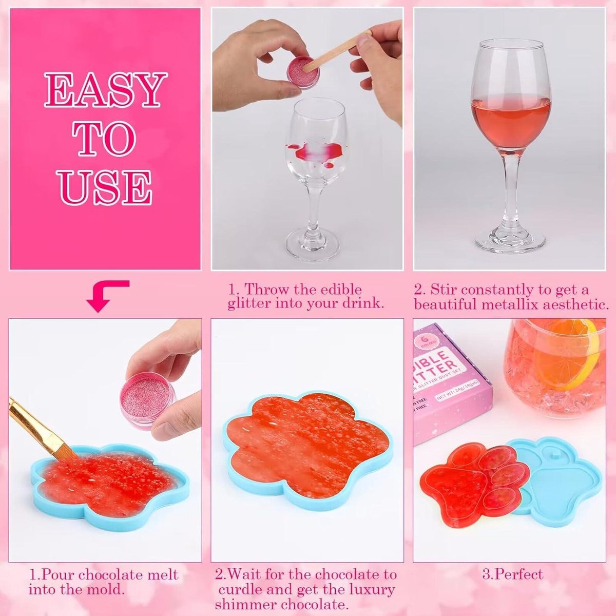 Met onze verbeterde formule zijn onze eetbare glitters levendig en gemakkelijk te gebruiken. Voeg gewoon een vleugje glamour toe aan je cocktails, cakes, fondant, chocolade en meer!