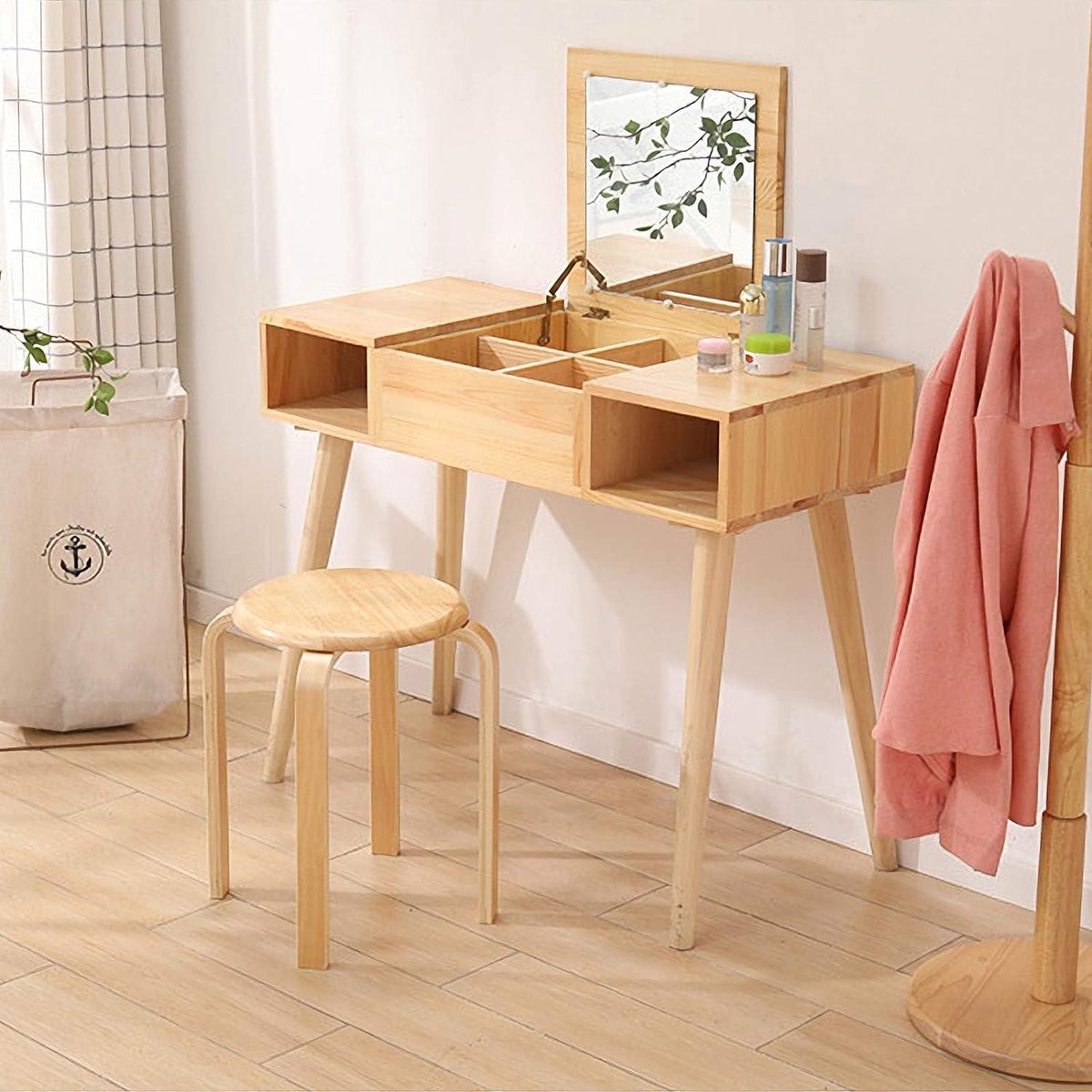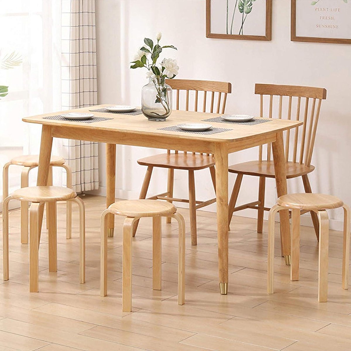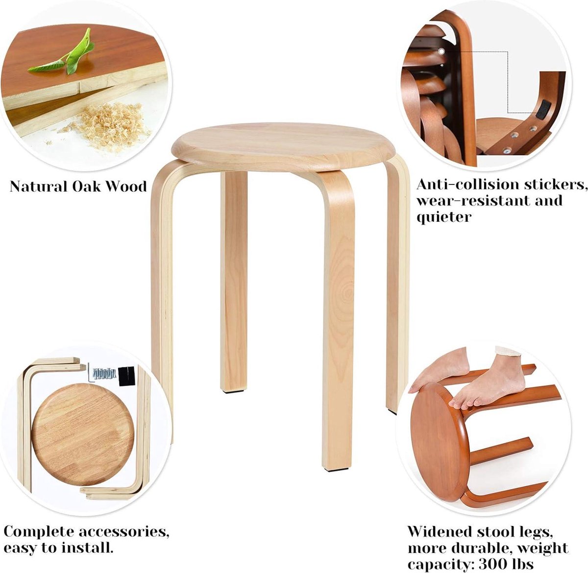 Eetkamerstoel/barkrukken van massief hout stapelbaar - gladde stoelen voor woonkamer en keuken - natuurlijk hout - 40x33x44cm RF-752 pop up stool