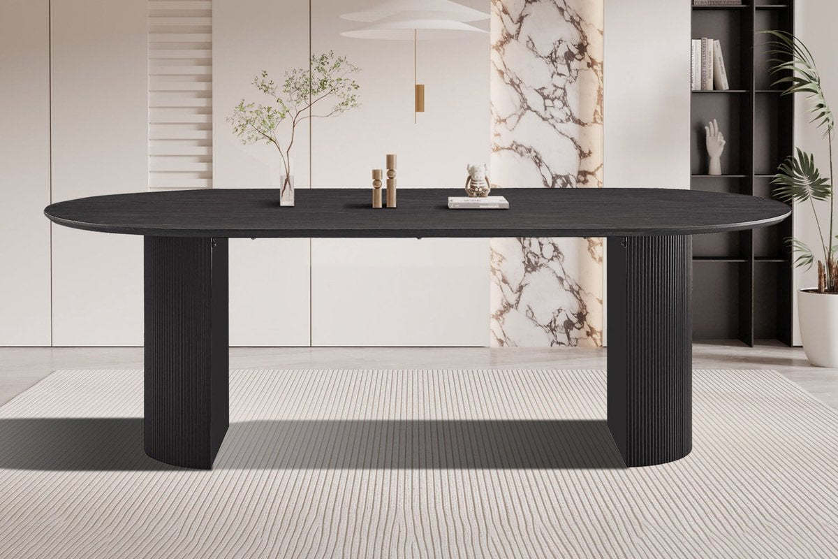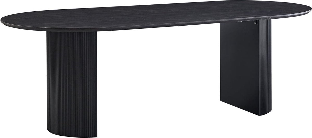 Deze prachtige eetkamertafel Odile is perfect om gezellig te tafelen met familie en vrienden. De ovale vorm zorgt voor een warme uitstraling in je eetkamer. De tafel heeft een tafelblad van 25 mm MDF met een houtlook afwerking en een stevig MDF onderstel, waardoor hij duurzaam en stabiel is. Het tafelblad voelt natuurlijk aan en is gemakkelijk schoon te houden. Of je nu een feestje hebt of gewoon met je gezin wilt dineren, deze tafel past zich aan aan verschillende situaties.