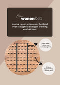 Op de foto's is nog goed te zien hoe de tafel er uit ziet in een ingerichte ruimte, ook een foto van de details in het tafelblad. Mangohout staat bekend om zijn mooie patronen en levendige en natuurlijke uitstraling.