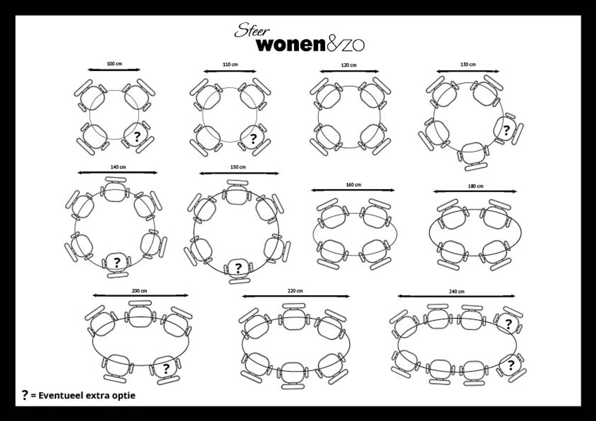 De tafel is ook verkrijgbaar in; 160 cm, 200cm, 220cm en 240 cm.