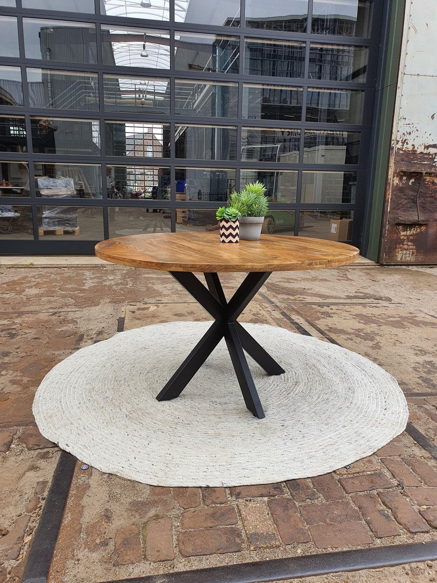 Eettafel rond - 130cm - mango - zwart - metalen 4-poot