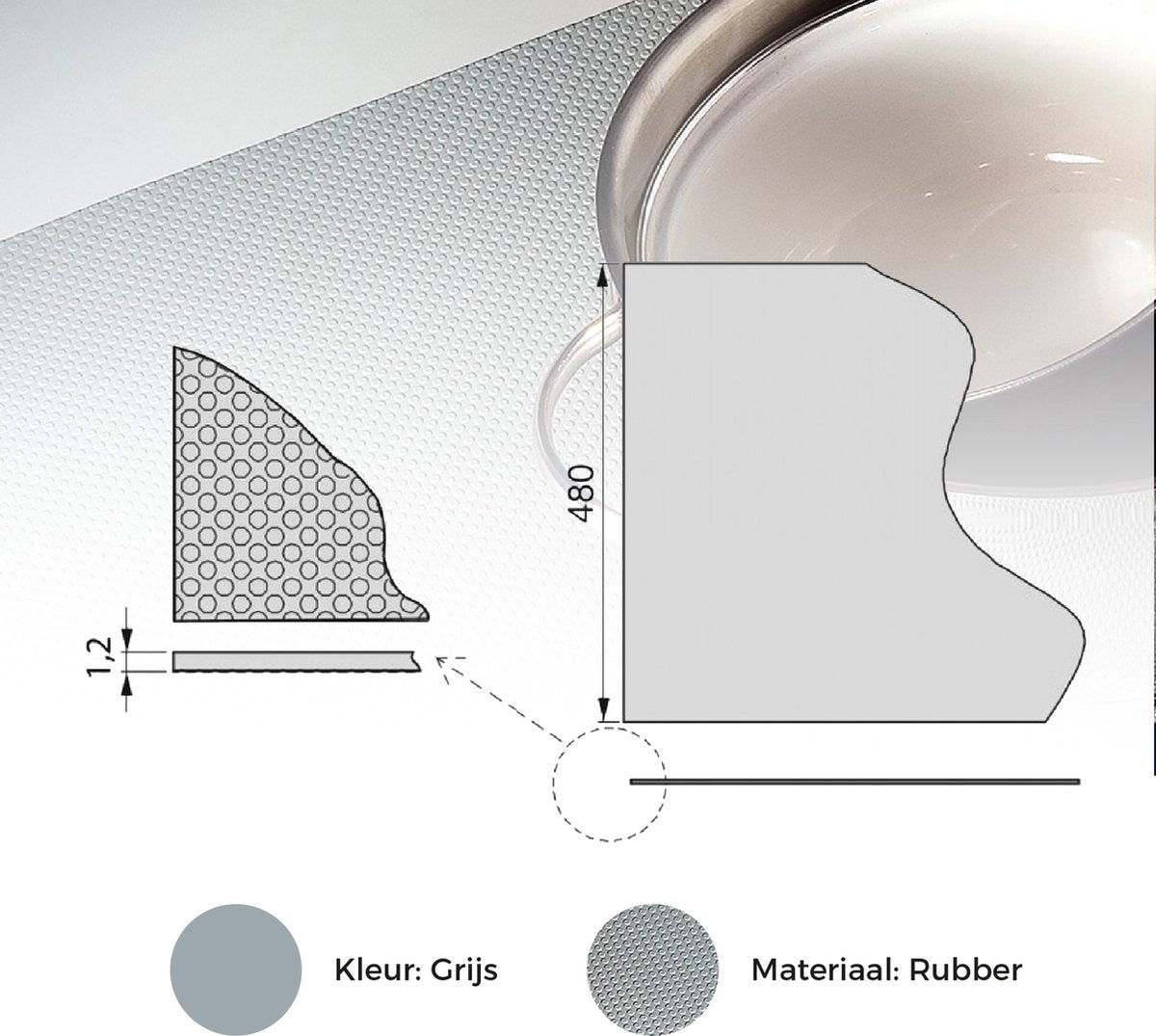 Eleganca antislipmat op rol voor keuken en kastlades - 48x150cm 1.2mm dik - grijs - hoge kwaliteit rubber - anti schuiven