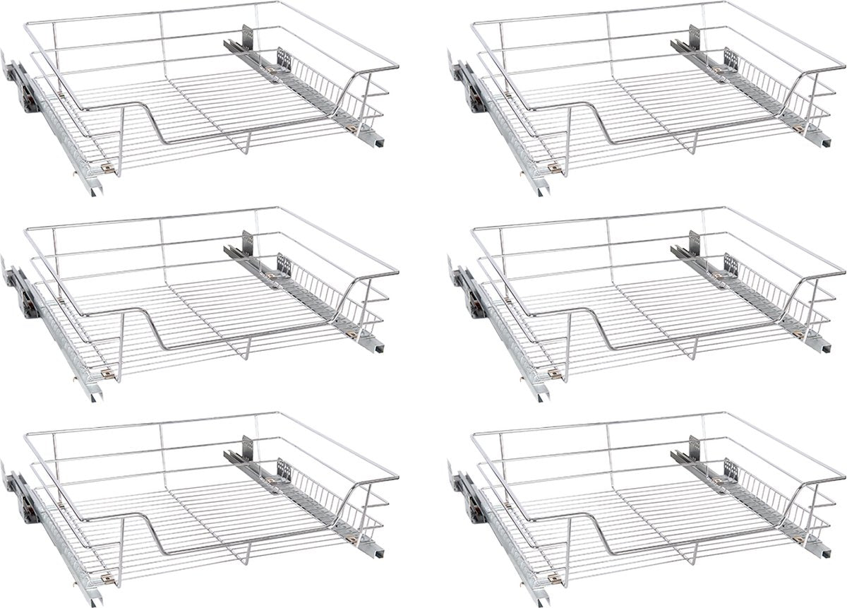 Eleganca draadmand met Ondergeleider en Soft Closing – Keukenkast schuiflade – B 51.5 x H 14 x D 44.5 cm – Uitschuifbaar keukenrek – Inbouwlade – Maximale belastbaarheid 20 kg – RVS – Zilver – 6 Stuks