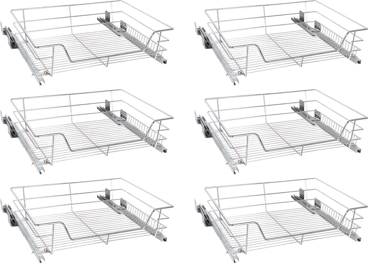 Eleganca draadmand met Ondergeleider en Soft Closing - Keukenkast schuiflade - B41.5 cm, H14 cm & D44.5 cm - Uitschuifbaar keukenrek - Geschikt voor kastjes met frontbreedte van 50 cm - Inbouwlade - Maximale draagkracht 20 kg- RVS - Zilver - 6 Stuks