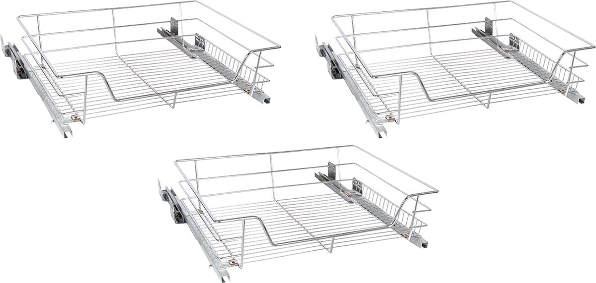 Eleganca draadmand met Ondergeleider en Soft Closing – Schuiflade keukenkast – B 51.5 x H 14 x D 44.5 cm – Uitschuifbaar keukenrek – Inbouwlade – Maximale belastbaarheid 20 kg – RVS – Zilver – 3 Stuks