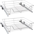 Eleganca draadmand met Ondergeleider en Soft Closing - Schuiflade keukenkast- B41.5 cm, H14 cm & D44.5 cm - Uitschuifbaar keukenrek - Geschikt voor kastjes met frontbreedte van 50 cm - Inbouwlade - Maximale draagkracht 20 kg- RVS - Zilver - 2 Stuks