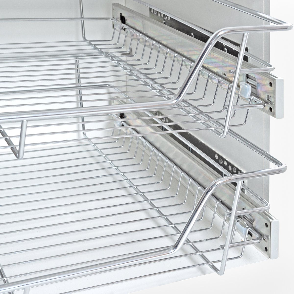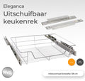 Met de stevige schuiflade van Eleganca haal je het uiterste uit jouw opbergruimte. In hoge kasten is het lastig om effectief je spullen op te bergen en inbouwlades zijn hier de ideale oplossing voor. Door de Eleganca draadmand te instaleren optimaliseer je de opbergruimte. De lades zijn zeer sterk en kunnen maar liefst 20 kg dragen. Dankzij de Soft Close functie hoef je je geen zorgen te maken om harde geluiden wanneer je de lade dicht duwt.