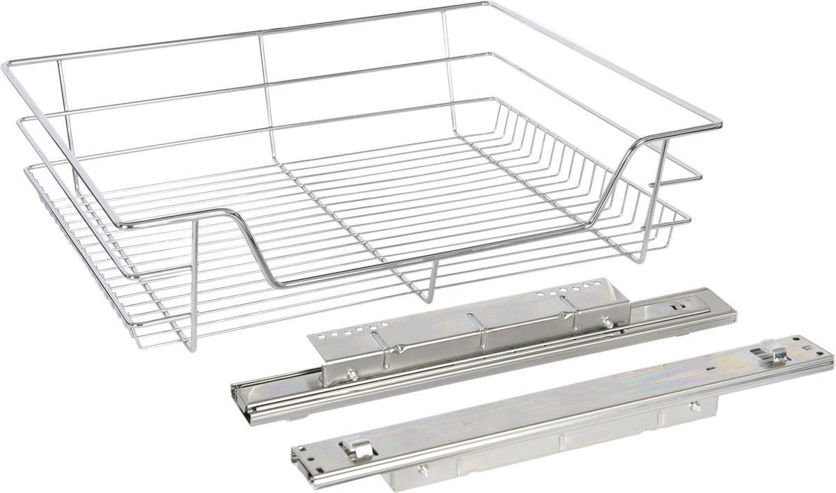 Eleganca draadmand met zijgeleider en Soft Closing - Keukenkast schuiflade – B51.5 x H14x D44.5 cm – Uitschuifbaar keukenrek – Inbouwlade – Maximale belastbaarheid 20kg – RVS – Zilver - 3 Stuks