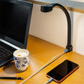 De lichtbron op het LED leeslampje straalt aangenaam koud wit licht (daglicht 6500K) en beschikt over een geïntegreerd USB poort. De USB poort maakt het gemakkelijk om tijdens het lezen, studeren of film kijken uw telefoon, tablet of laptop op te laden. Hiernaast kan de flexibele designlamp eenvoudig gedraaid worden om gericht te verlichten en beschikt het over een gebruiksvriendelijke aan- en uit knop aan de bovenkant van de lampen.