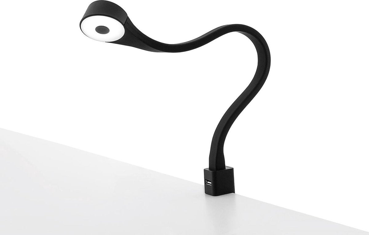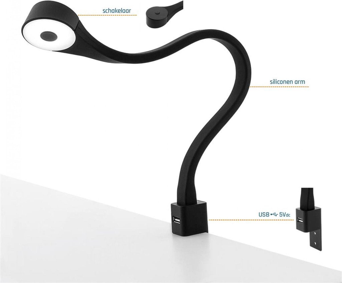 Eleganca flexibele bedlampjes 2 stuks - LED leeslampje - bureaulamp - nachtlamp - USB poort - zwart - 50cm - A++ - 6500K koel wit licht