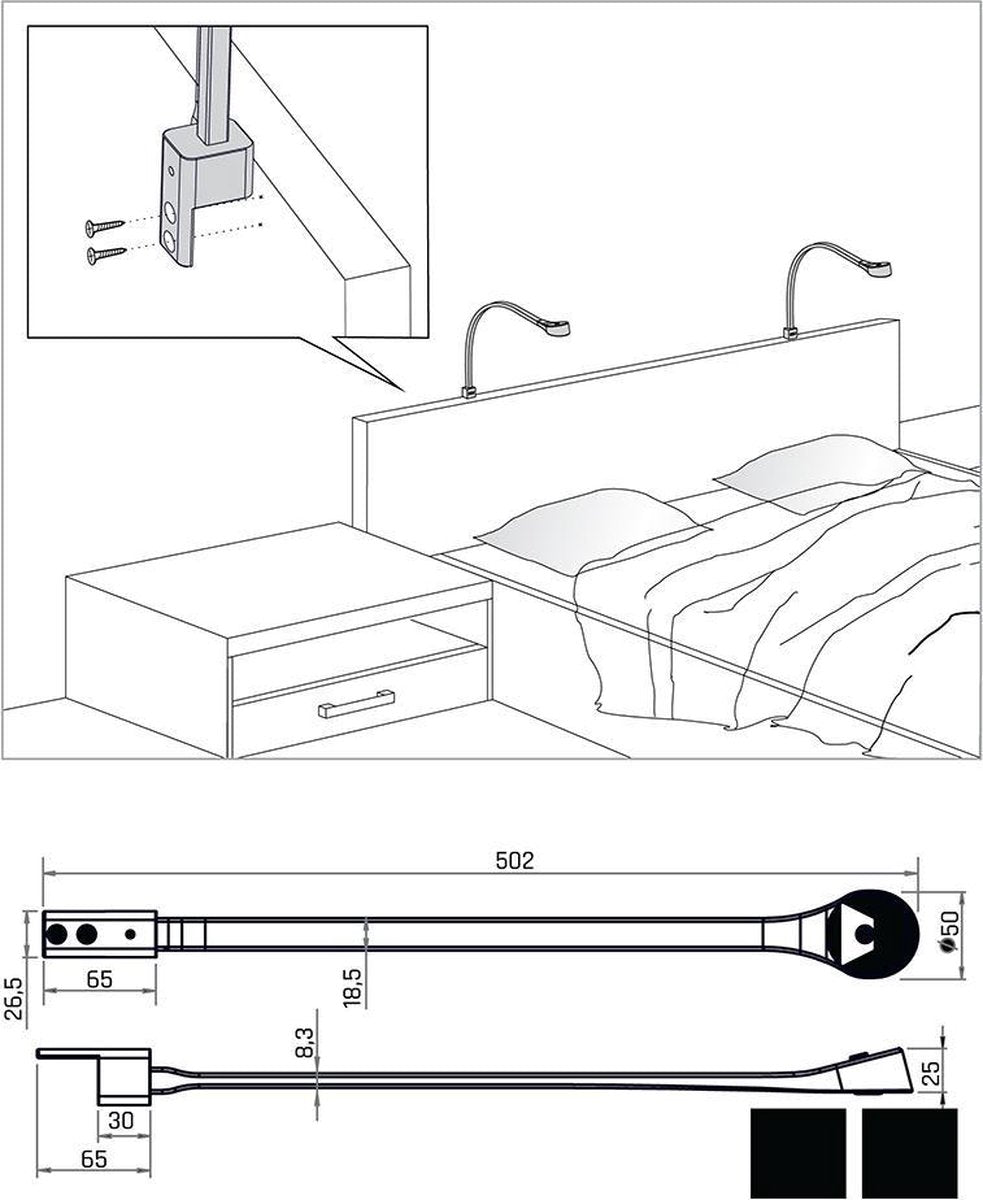 De slimme leeslamp is gemaakt van hoogwaardig kunststof en is zwart van kleur, waardoor de draaibare leeslamp een moderne en stijlvolle uitstraling heeft. Daarnaast ontvang je bij aankoop het nodige bevestigingsmateriaal, zodat je de bedlamp binnen enkele stappen aan ieder hoofdbord kan monteren. Ook is de slimme lamp te gebruiken als zijnde wandlamp, wat ervoor zorgt dat het zeer veelzijdig is in gebruik.