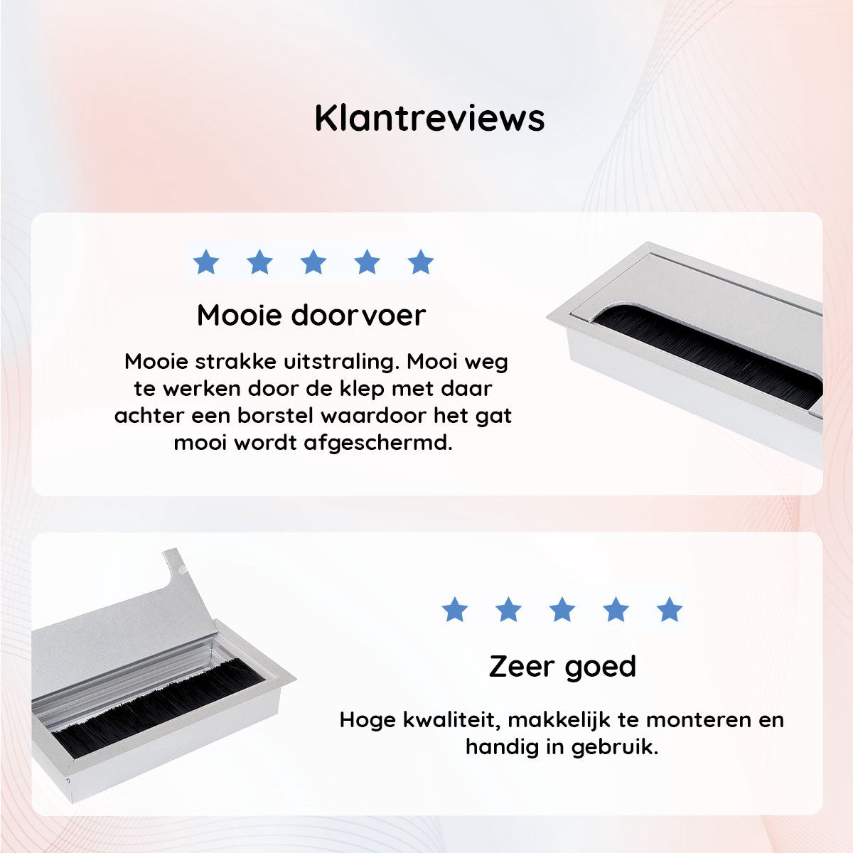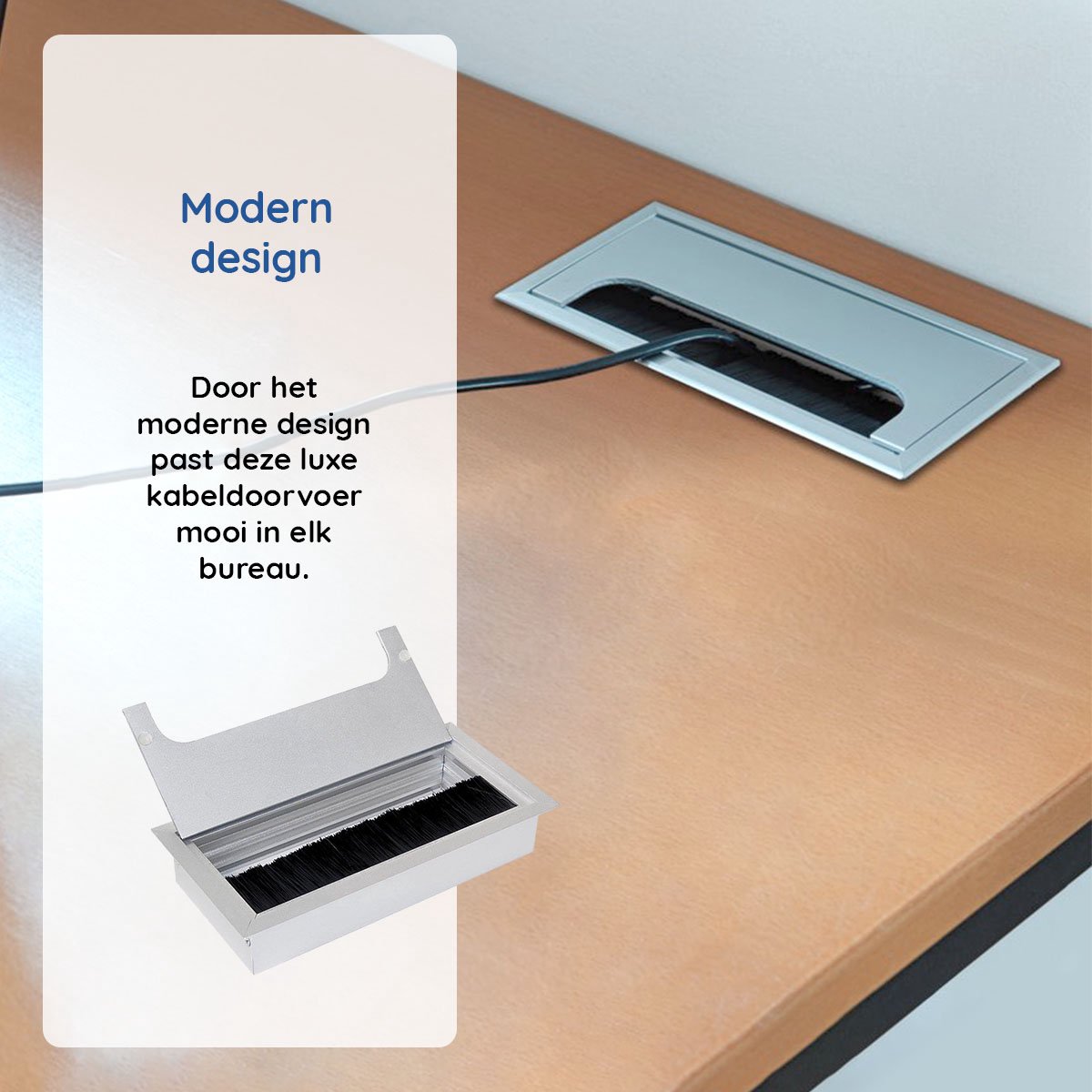 Deze afdekking is ideaal voor het opruimen en organiseren van kabels en snoeren, zoals die van je computer, bureaulamp of andere apparaten. Zo heb je een opgeruimde werkplek en kun je zonder afleiding werken of studeren. De kabeldoorvoer plaats je makkelijk en snel in het kabelgat en oogt ontzettend modern en elegant. Door het hoogwaardige aluminium is de doorvoer erg stevig en door de brede klep passen meerdere kabels van verschillende diktes.